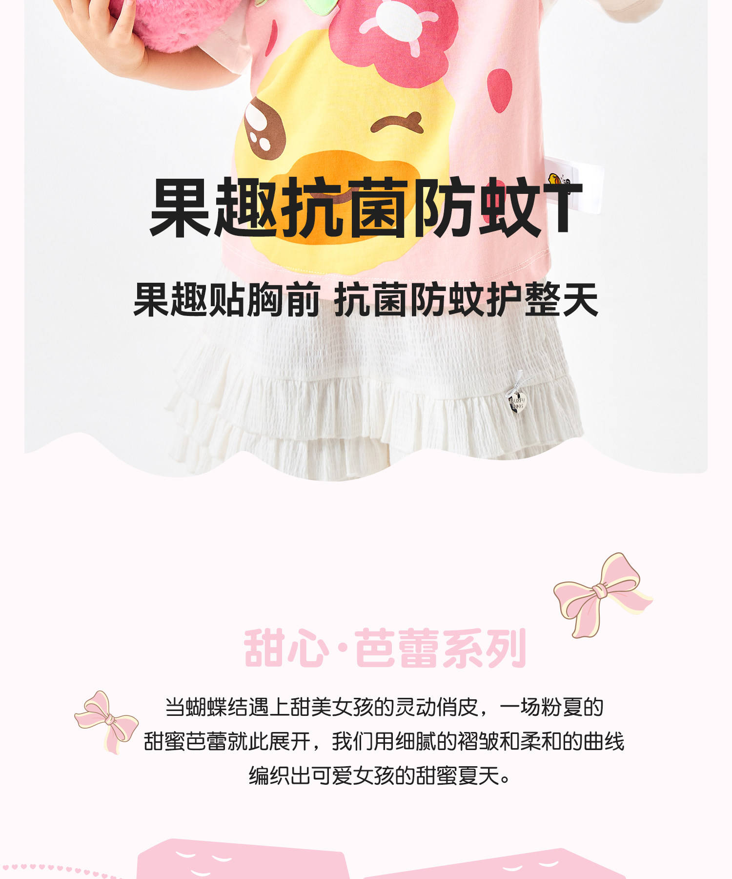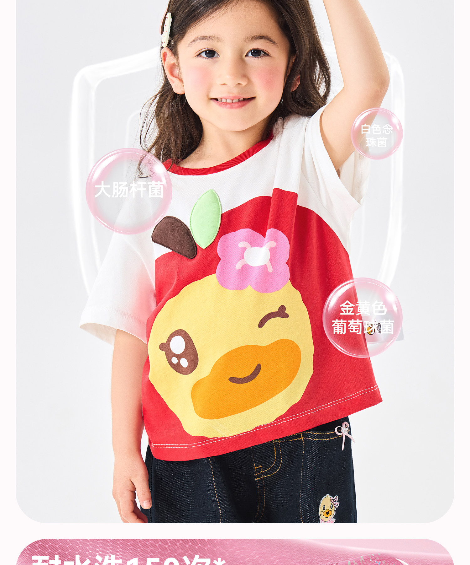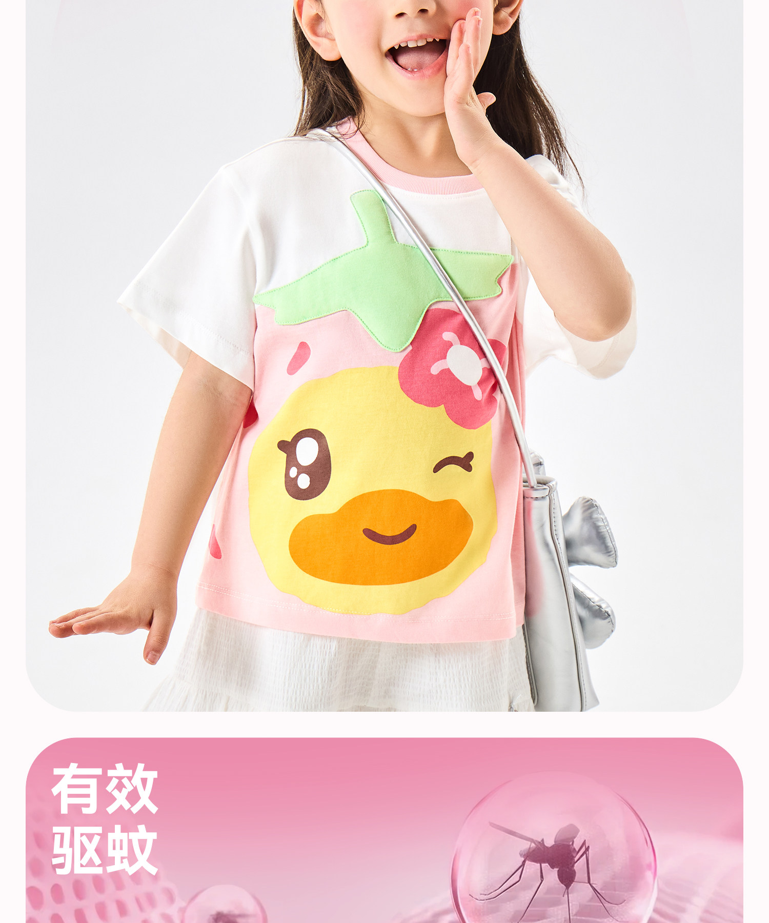 [抗菌驱蚊]bduck小黄鸭童装宝宝短袖T恤女童夏装纯棉儿童半袖上衣90-150 FF2701071