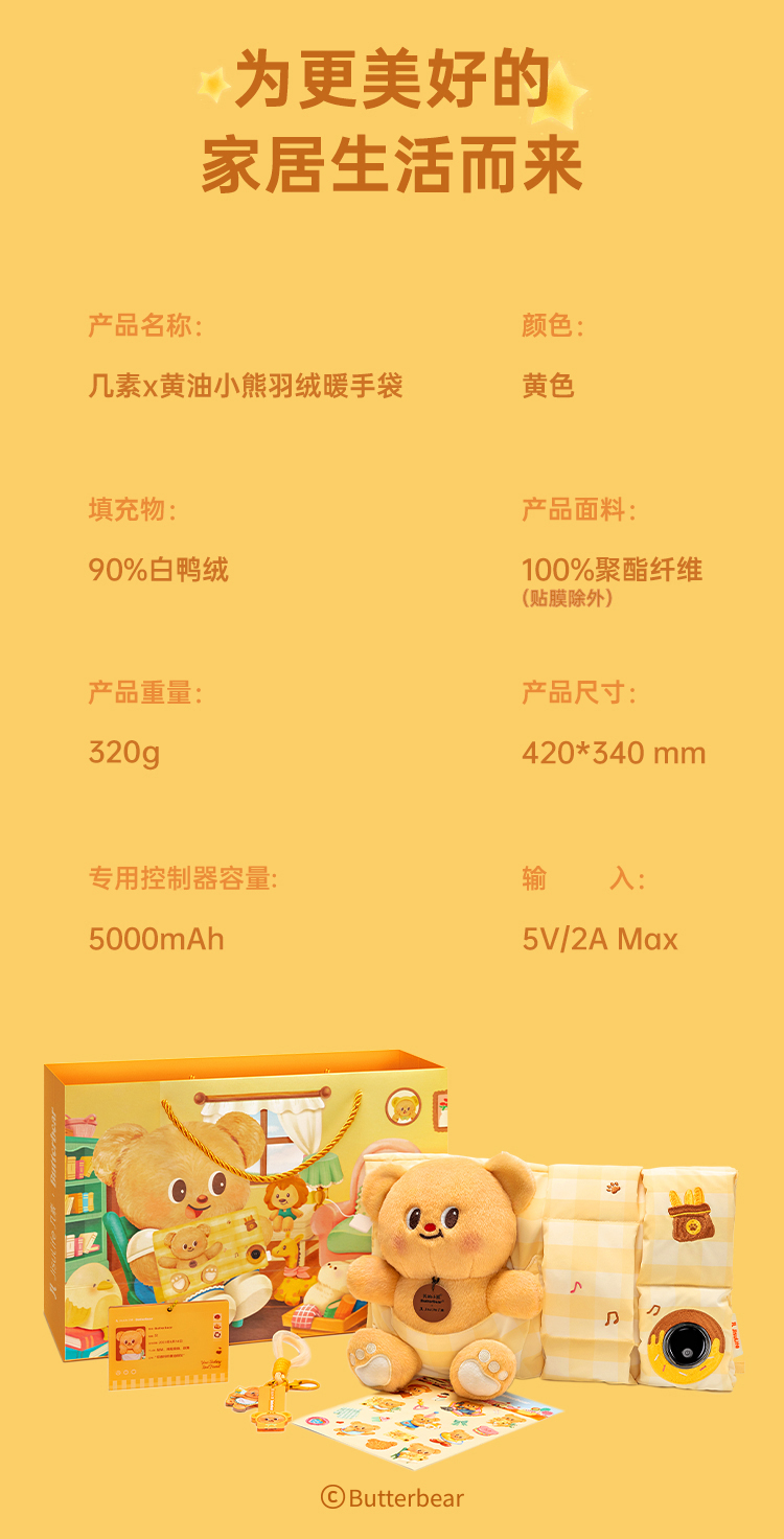 几素石墨烯羽绒暖手袋X黄油小熊IP联名定制款【限量发售】