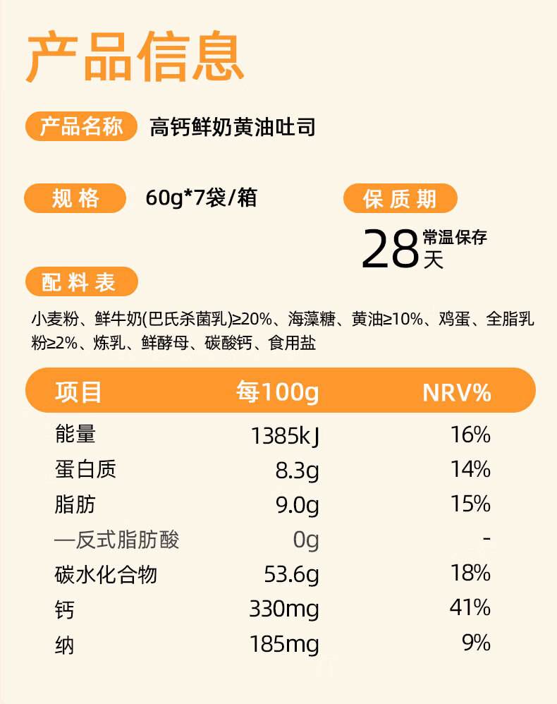 【分仓直发包邮】七年五季高钙牛乳黄油吐司420g/箱
