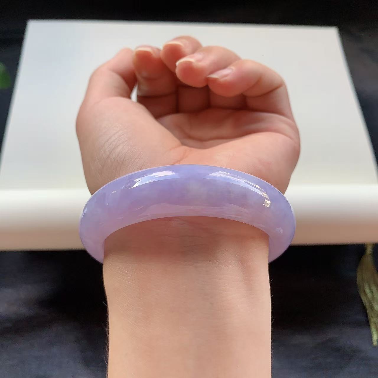 高货紫罗兰色翡翠手镯 传家宝温润圆满中式翡翠手镯49625031822H(一口价)