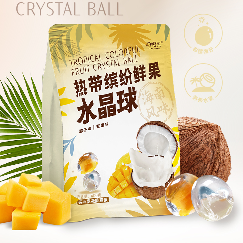 嘀嗒果热带缤纷鲜果水晶球400g椰子芒果味夹心软糖
