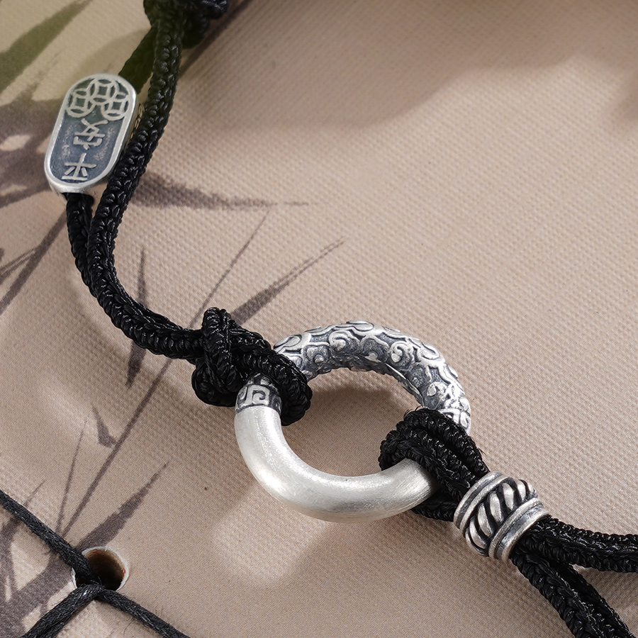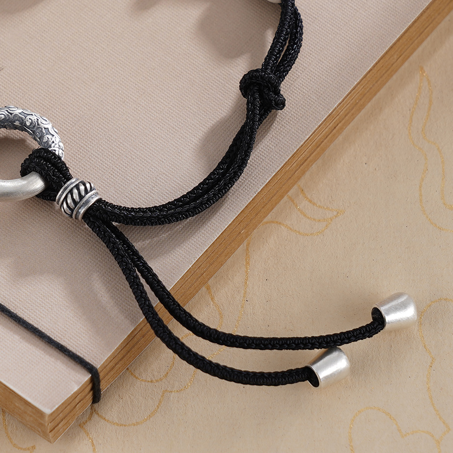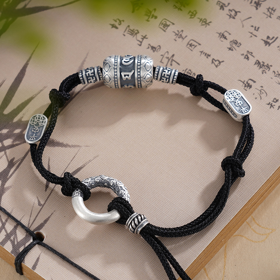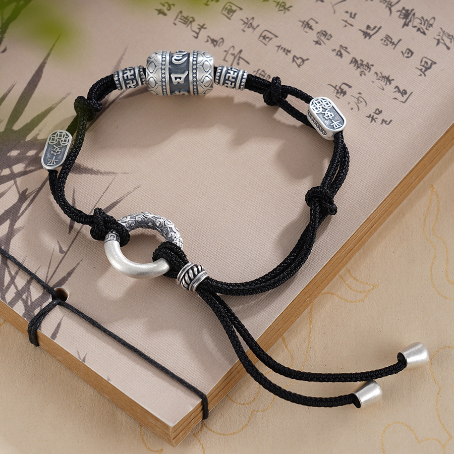 子佩集S999银【真言随心】手链纯银【N020-1】仿古拉绳黑绳2501