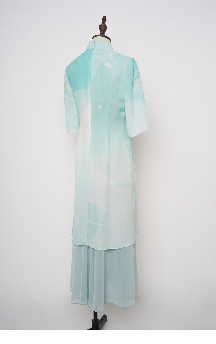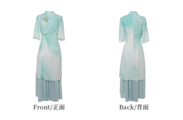 吉祥衣家新中式国风蚕桑丝裙子气质修身显瘦女装疏影水清浅连衣裙