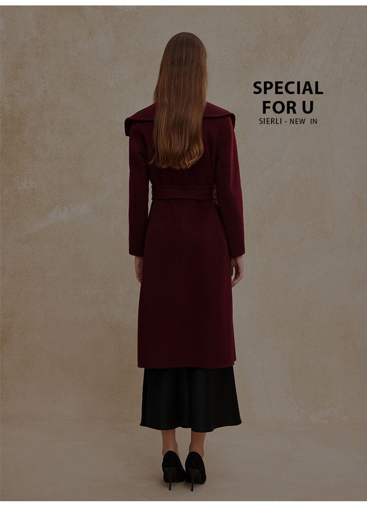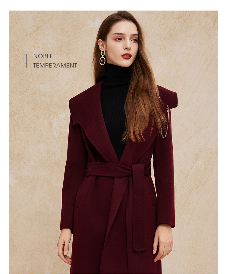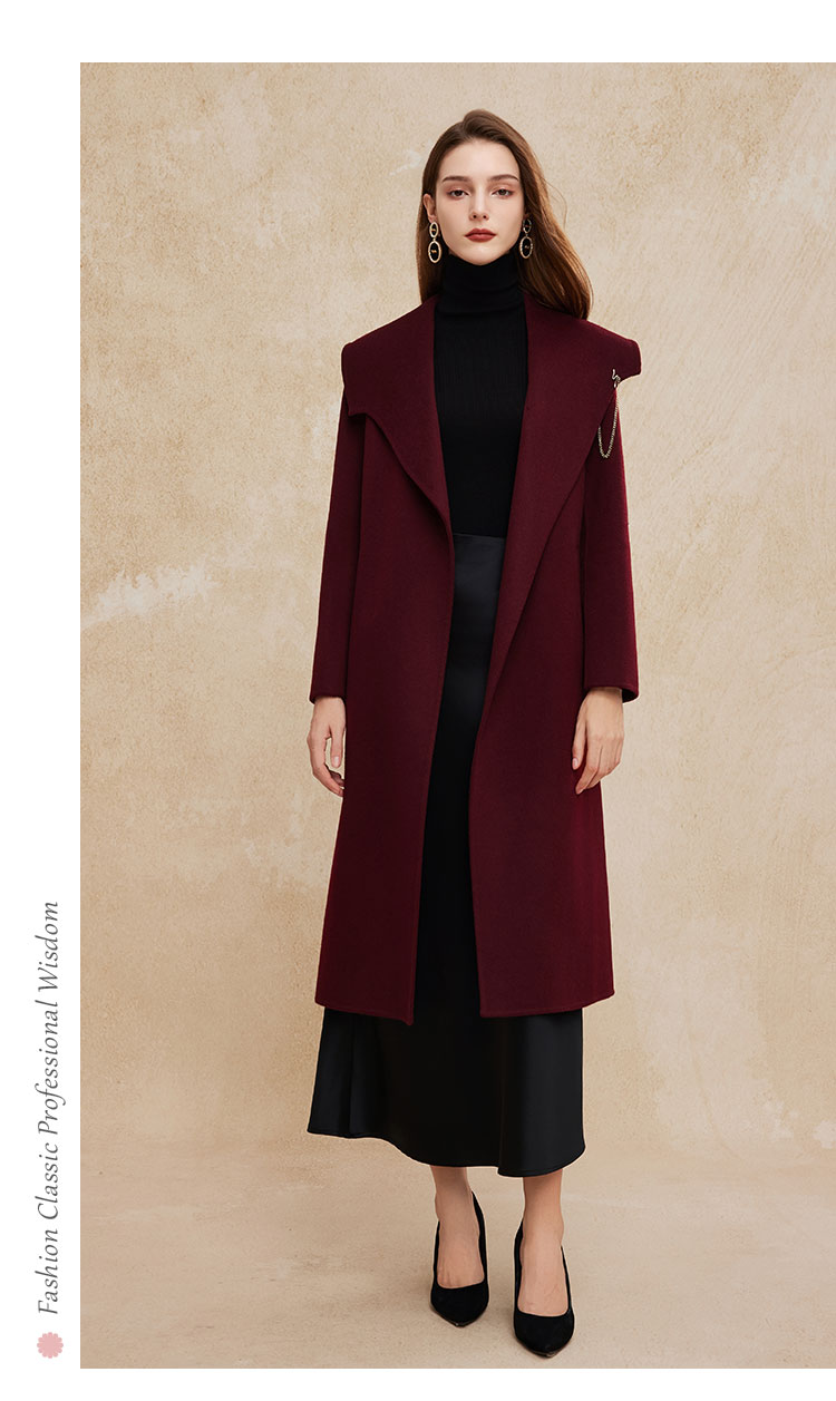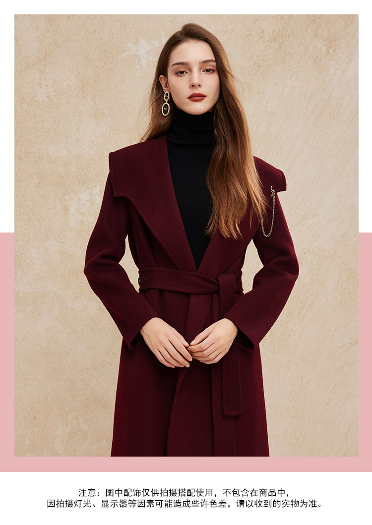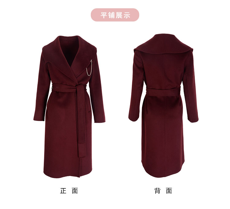 PH968斯尔丽24冬季新款绵羊毛双面呢大翻领气质高贵胸针款通勤大衣