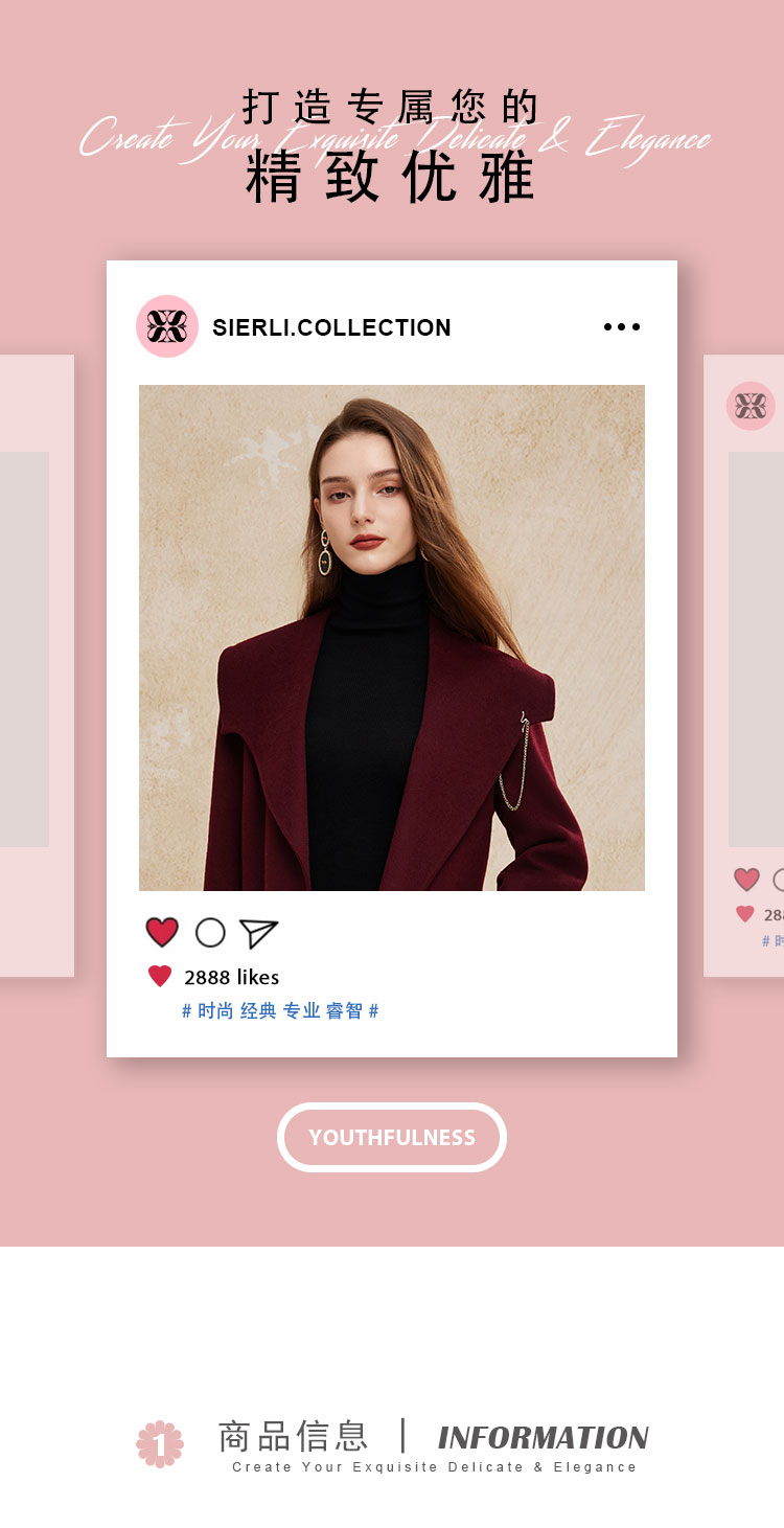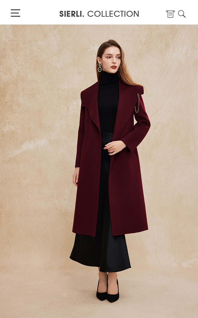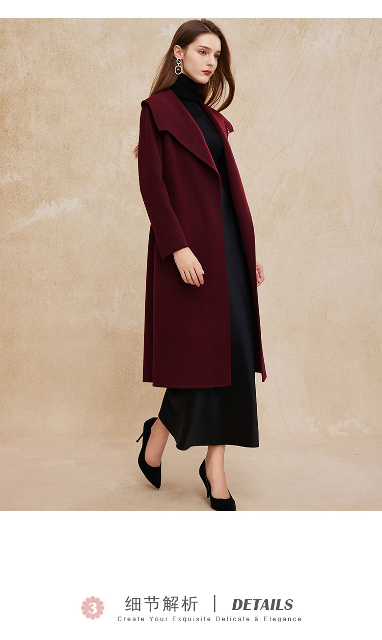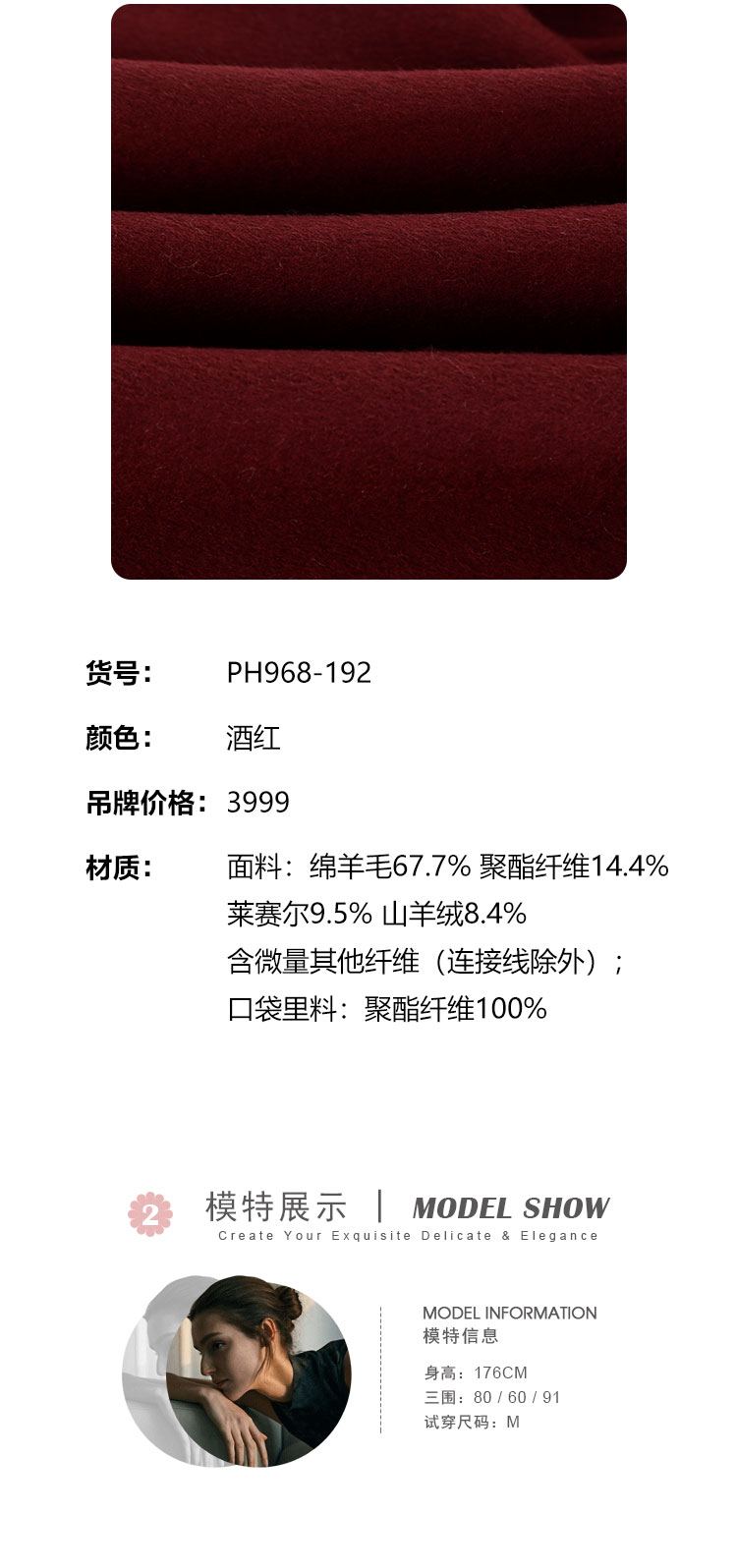 PH968斯尔丽24冬季新款绵羊毛双面呢大翻领气质高贵胸针款通勤大衣