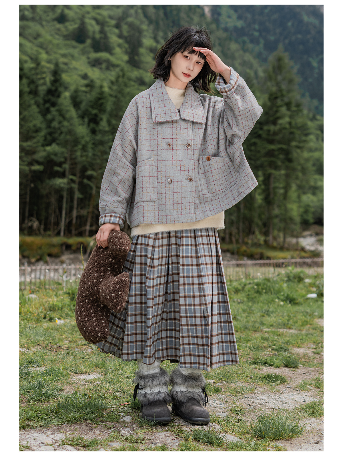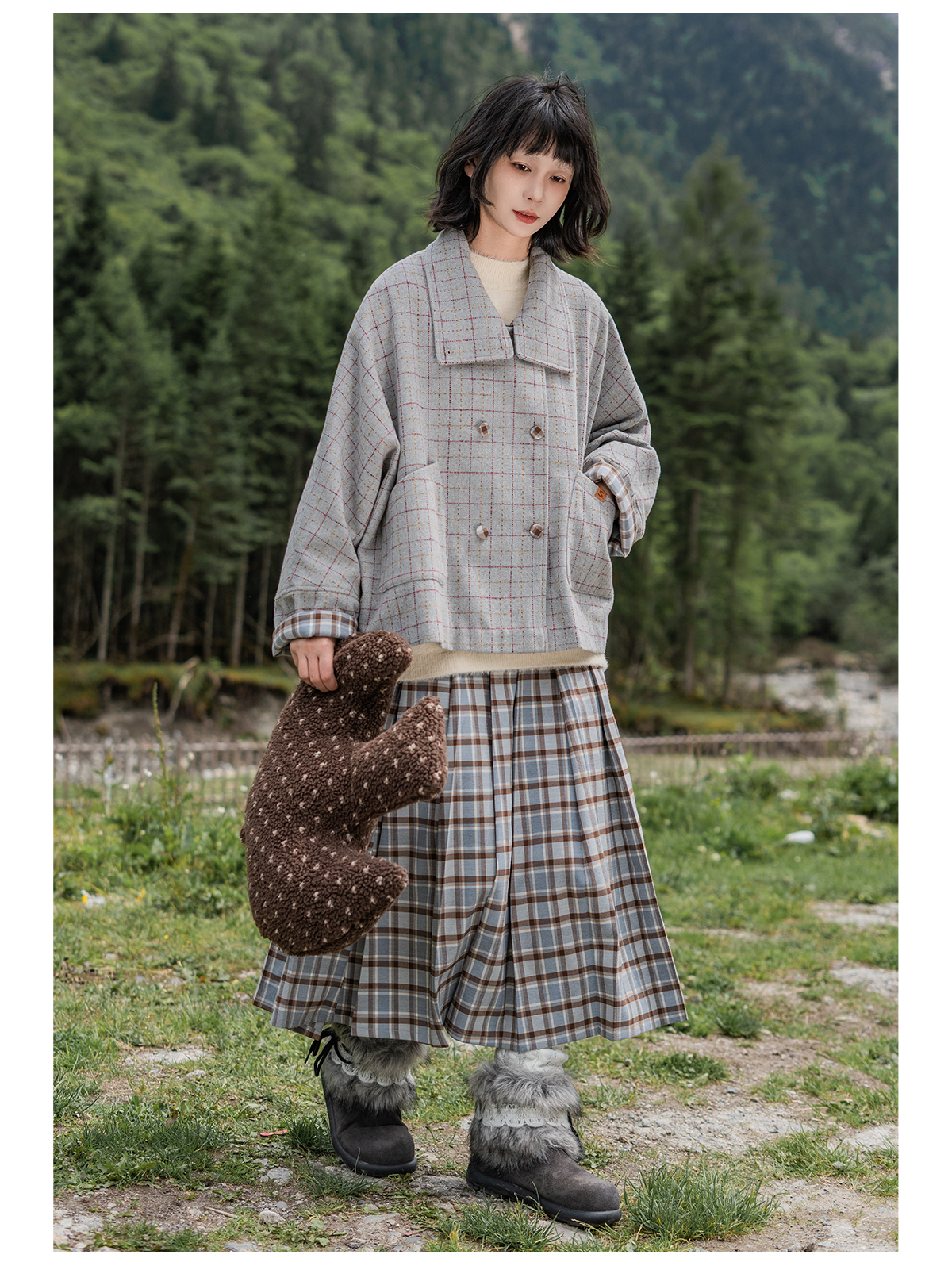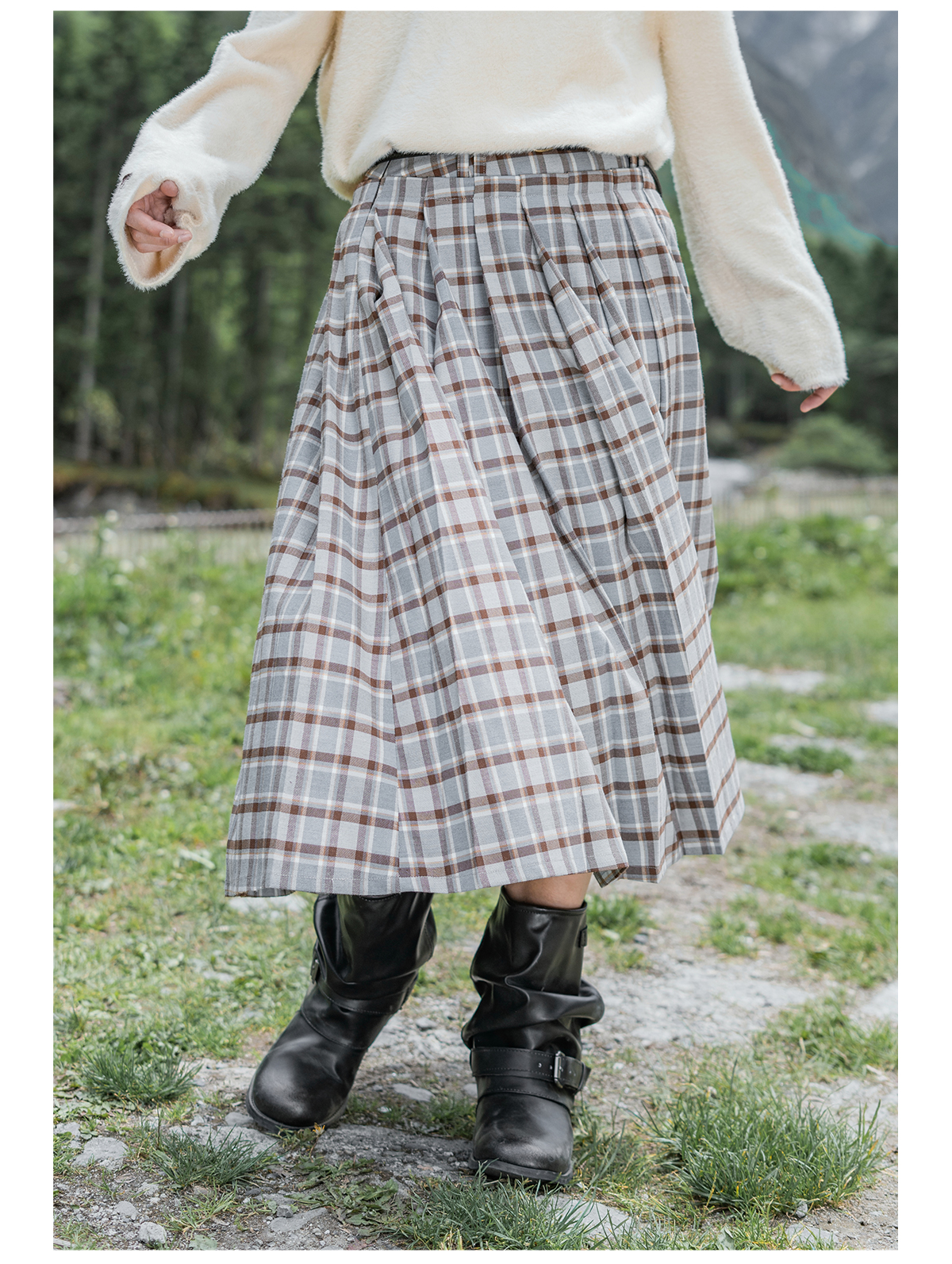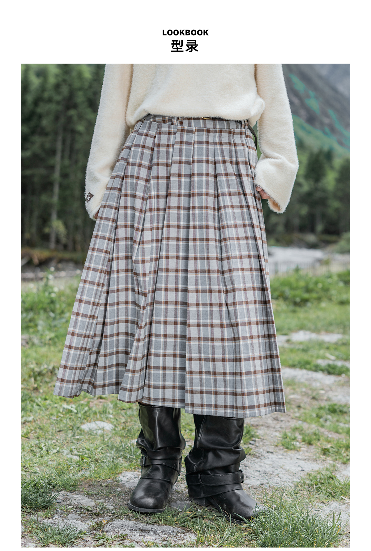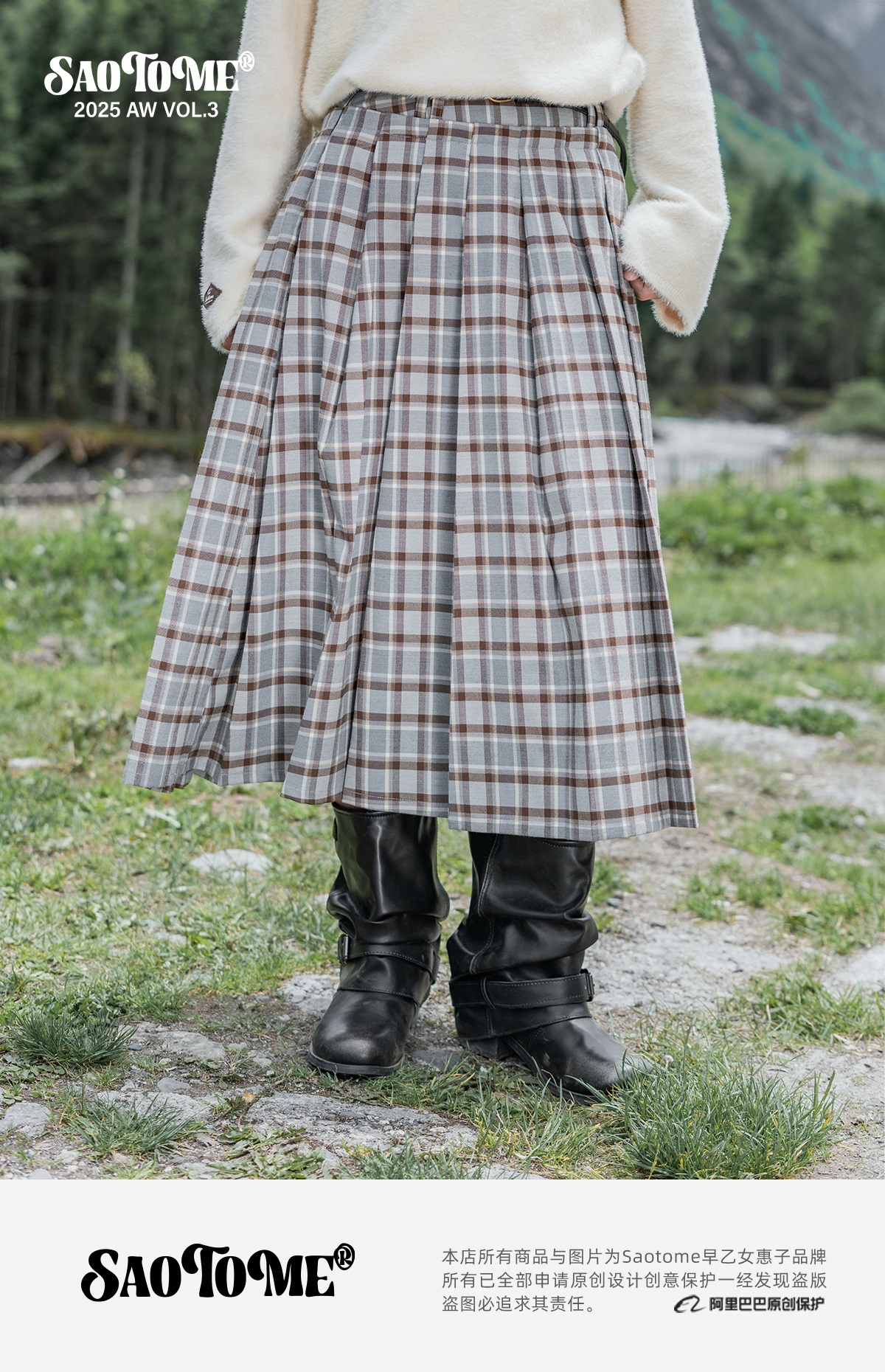 早乙女惠子saotome/STMBQ13647/百褶格子裙