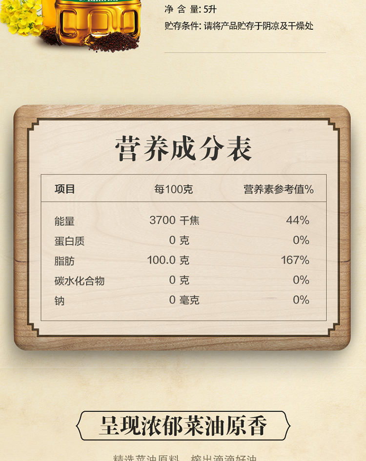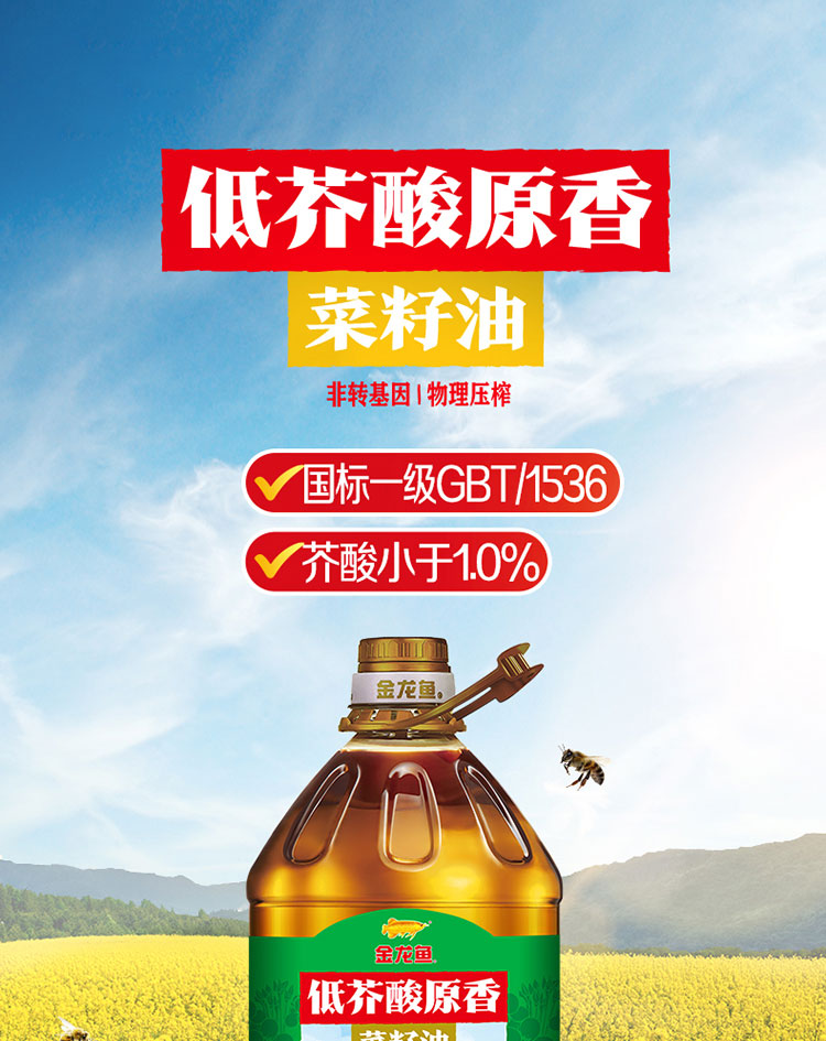 金龙鱼低芥酸原香菜籽油/非转压榨一级5L-YS