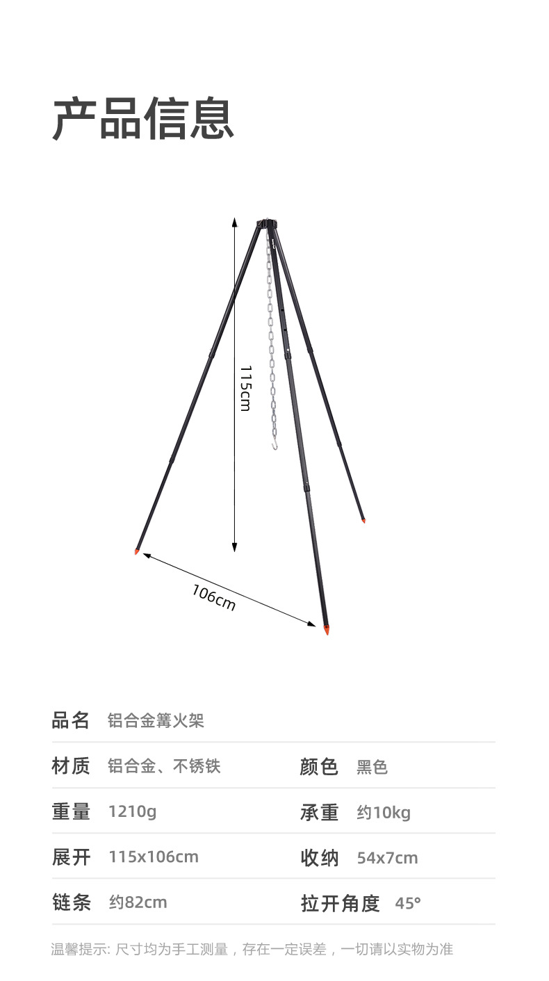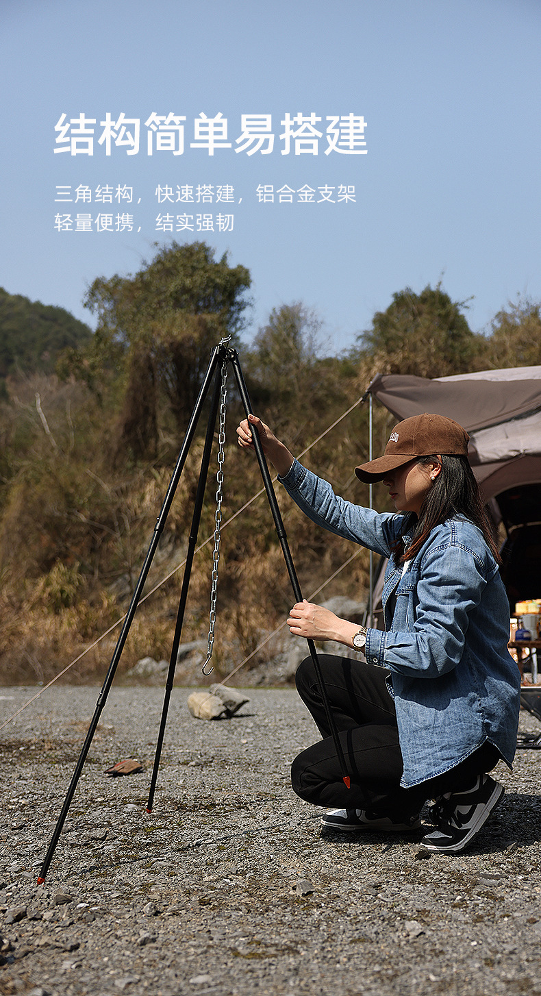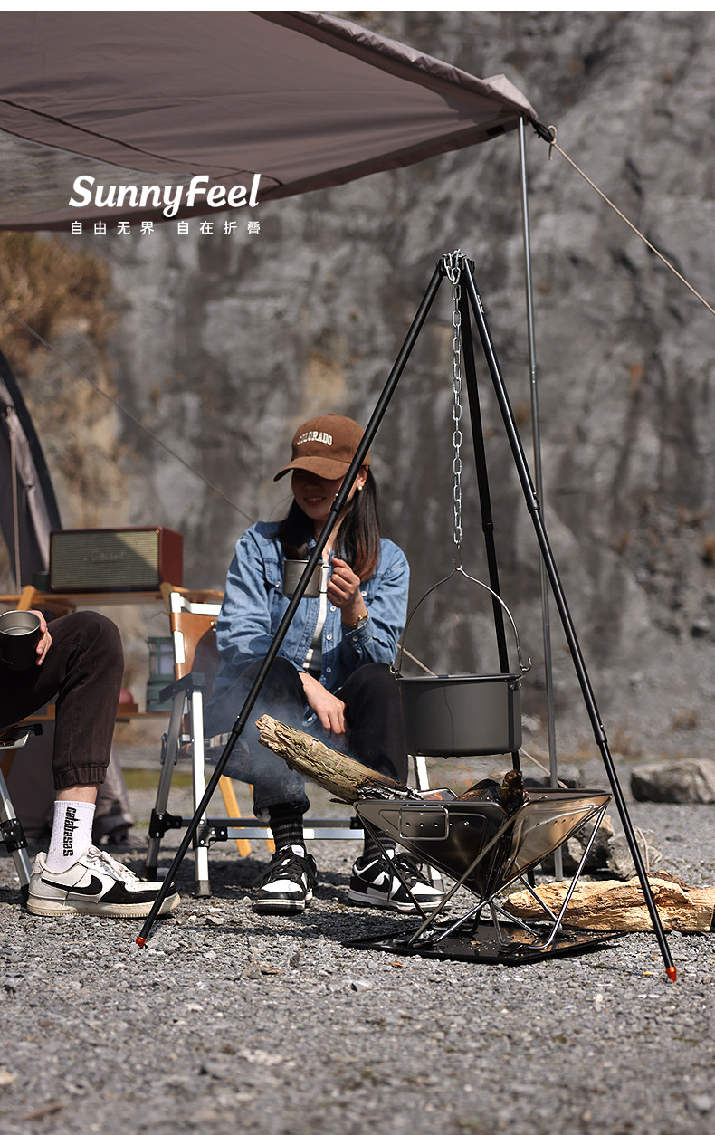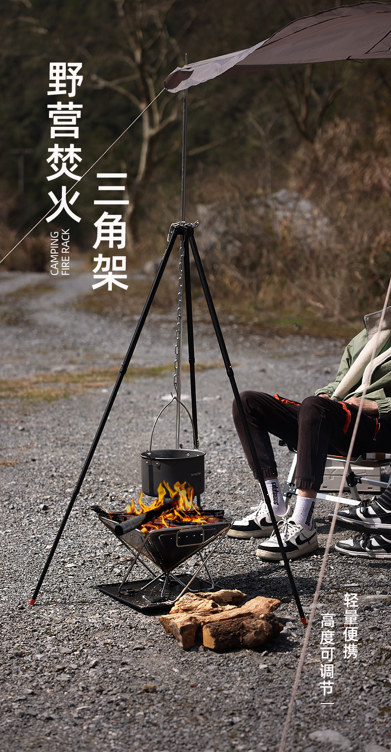 SunnyFeel山扉户外篝火支架_可调节便携露营吊锅铝合金篝火架