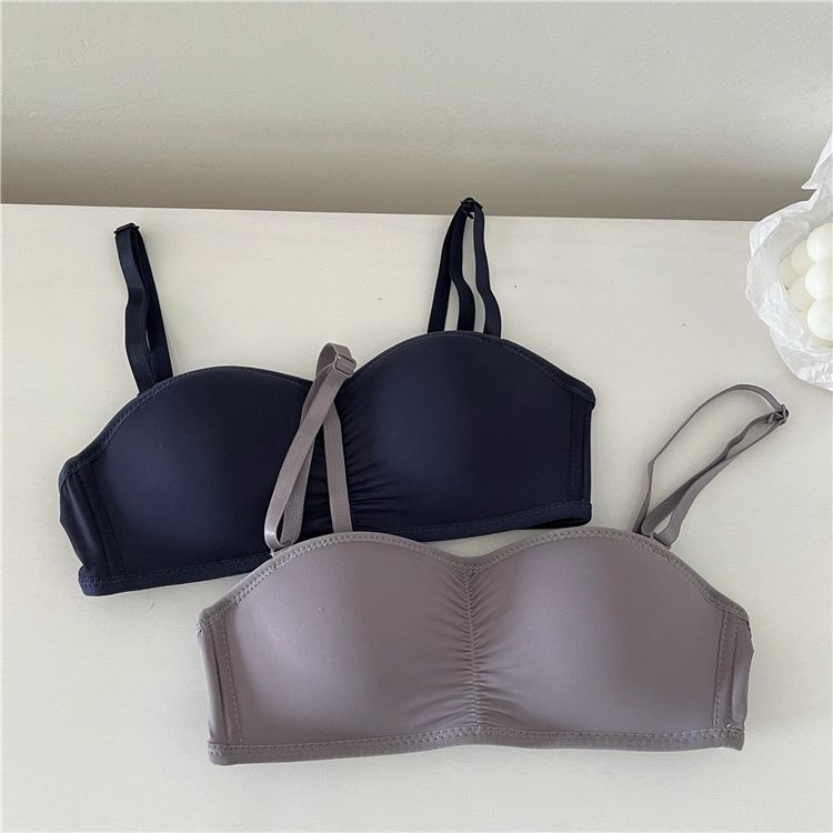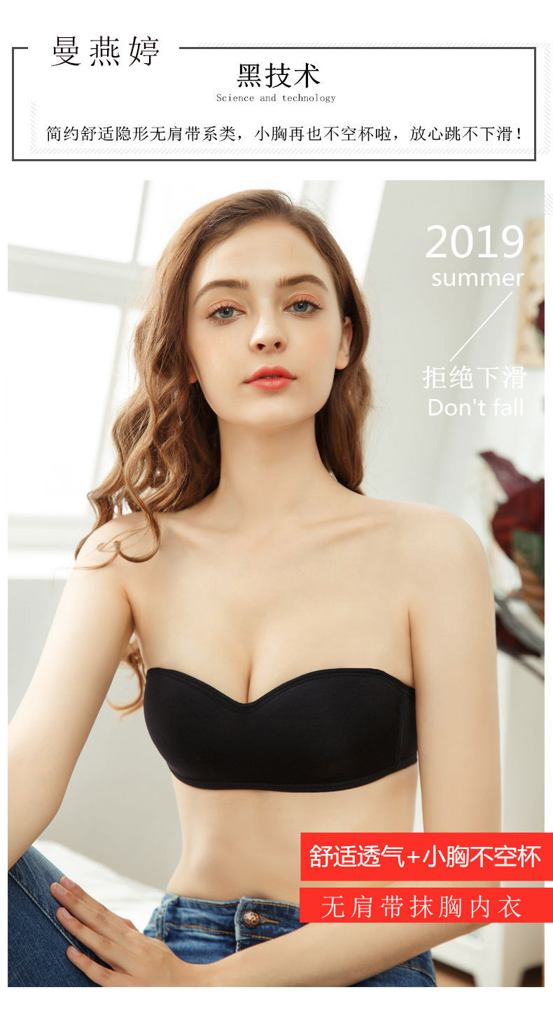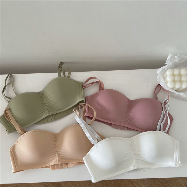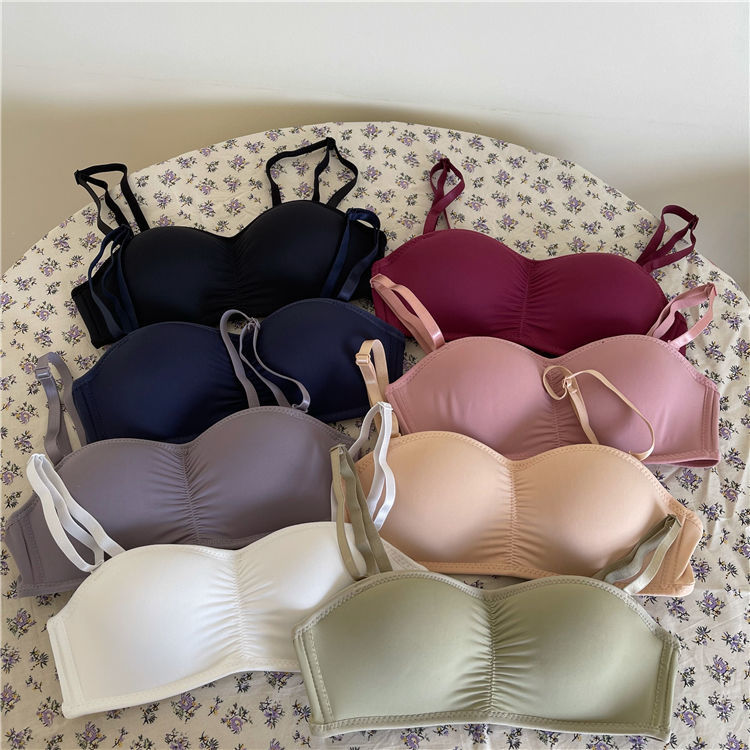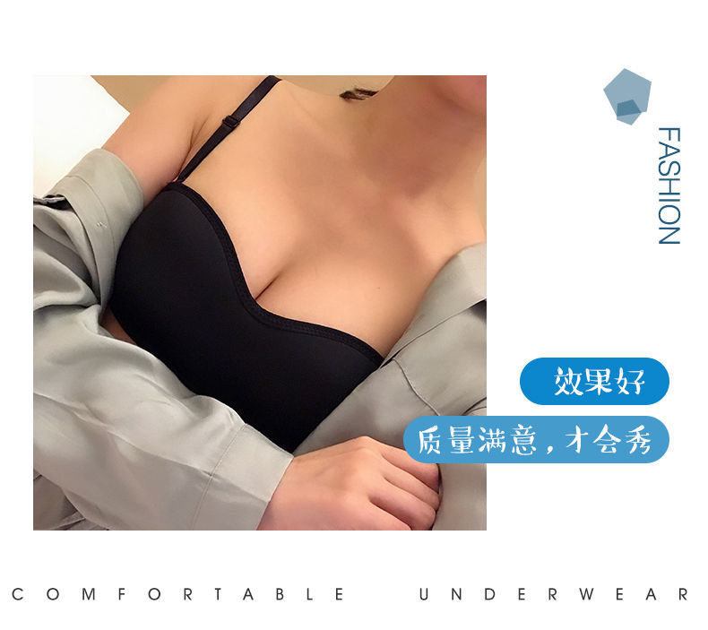 黛唯梵子墨二代内衣女夏季无肩带可拆卸隐形学生韩版高中生聚拢抹胸内衣大胸显小