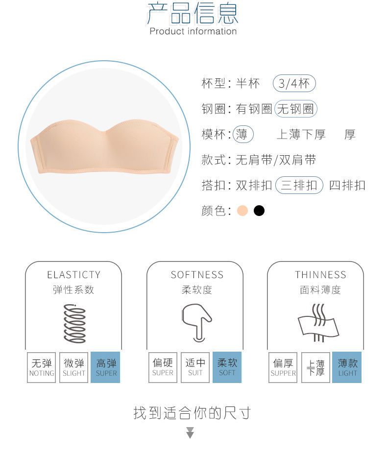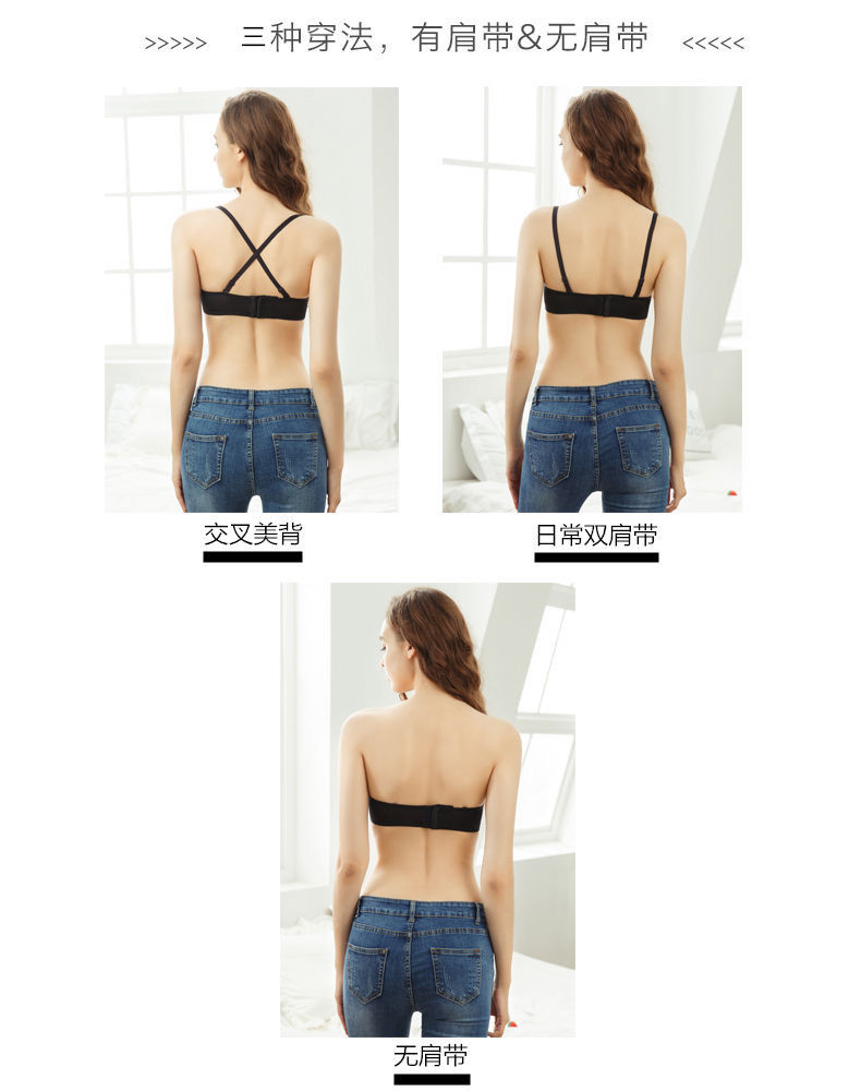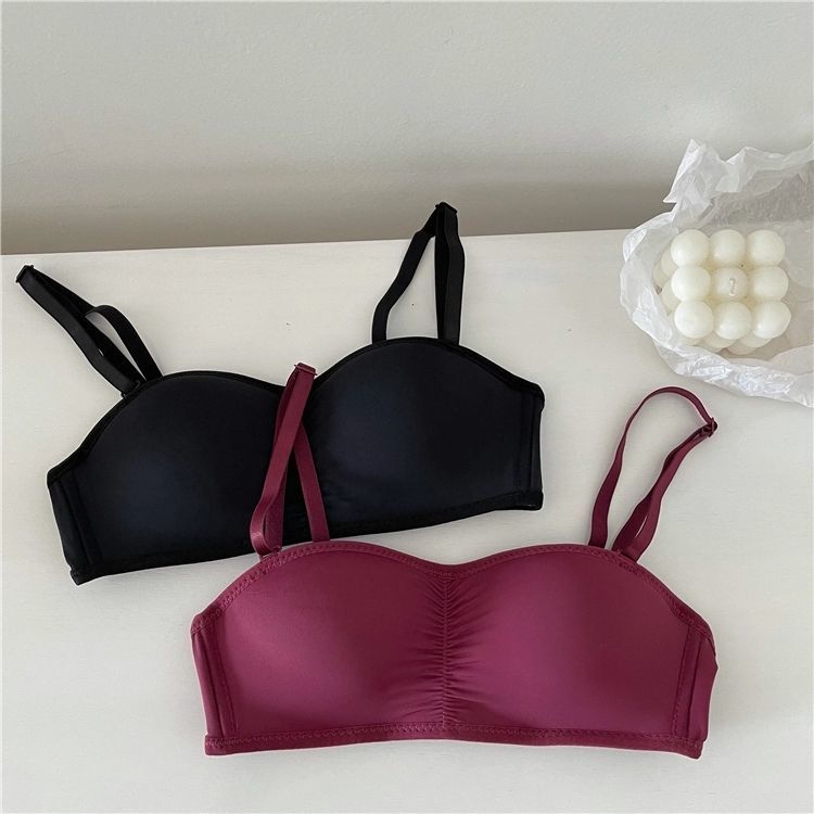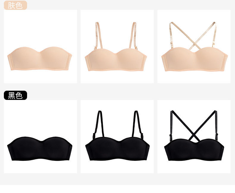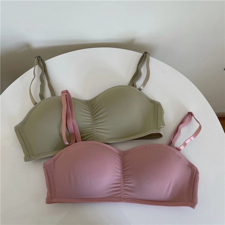 黛唯梵子墨二代内衣女夏季无肩带可拆卸隐形学生韩版高中生聚拢抹胸内衣大胸显小