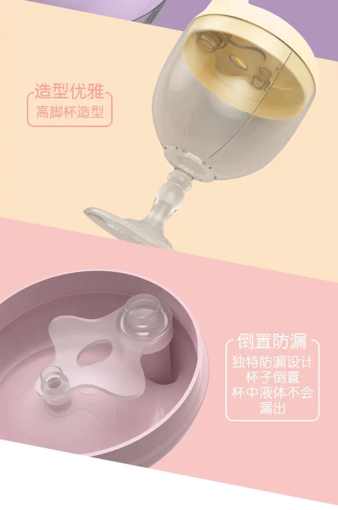 宝宝餐具高脚创意牛奶杯鸭嘴儿童刻度杯防摔酒杯式奶瓶果汁饮料杯