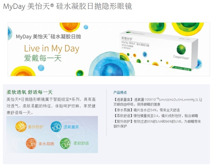 【透明日抛】美国库博美怡天30片装 透氧率100度数不同请拍两盒(买三赠一)
