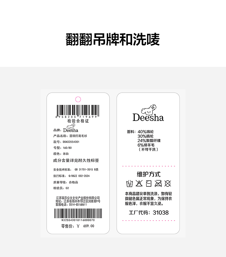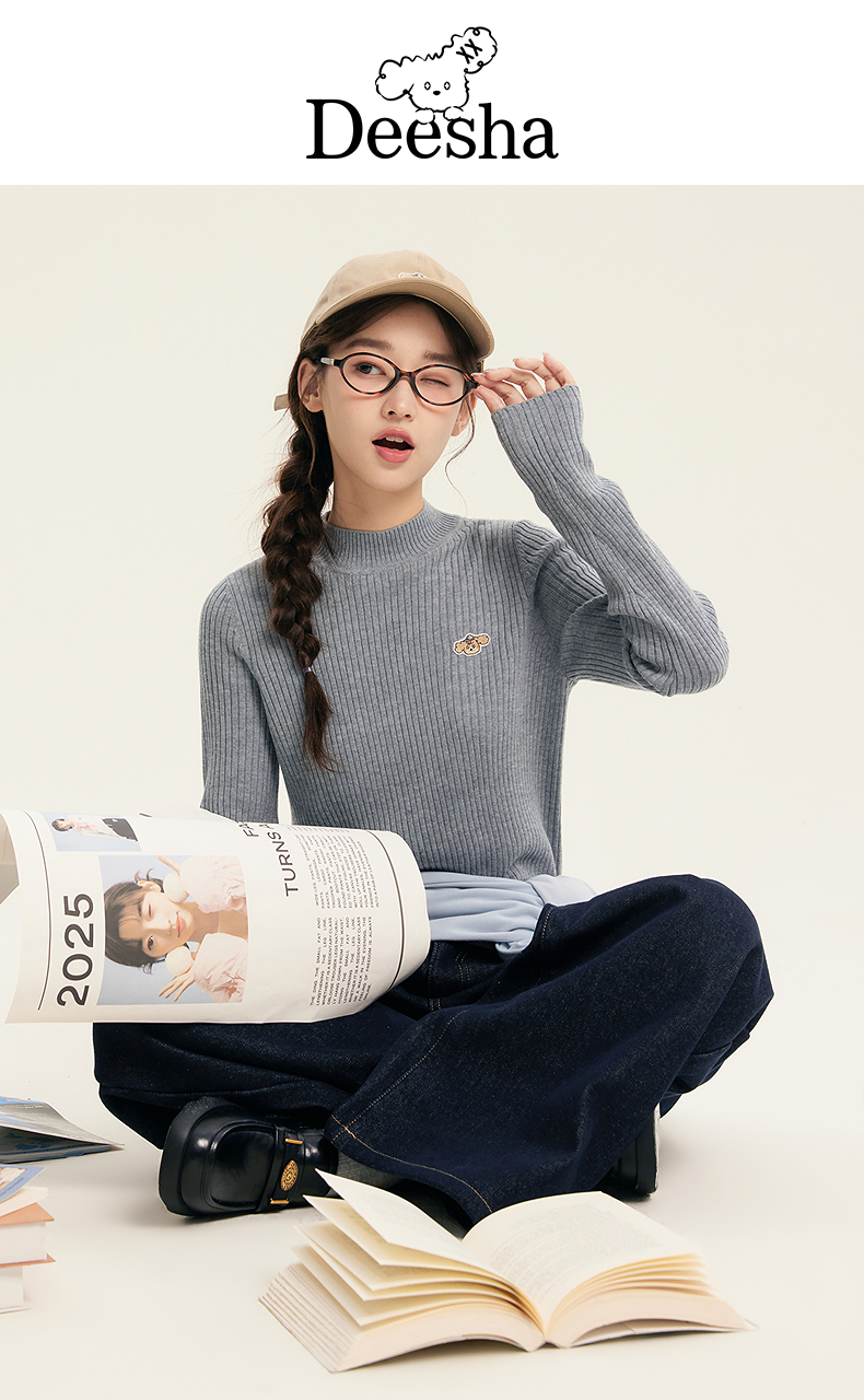 笛莎Deesha青少年女童毛衣2025冬季女童多色澳毛混纺打底毛衣