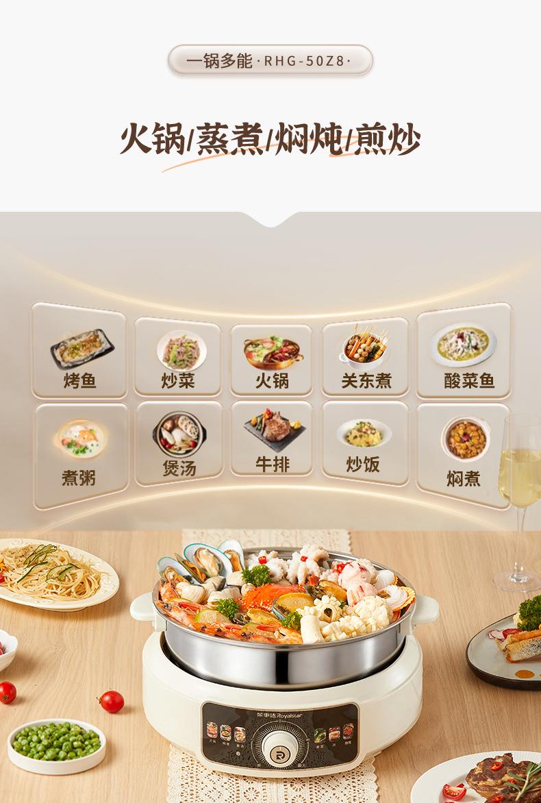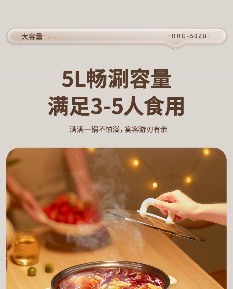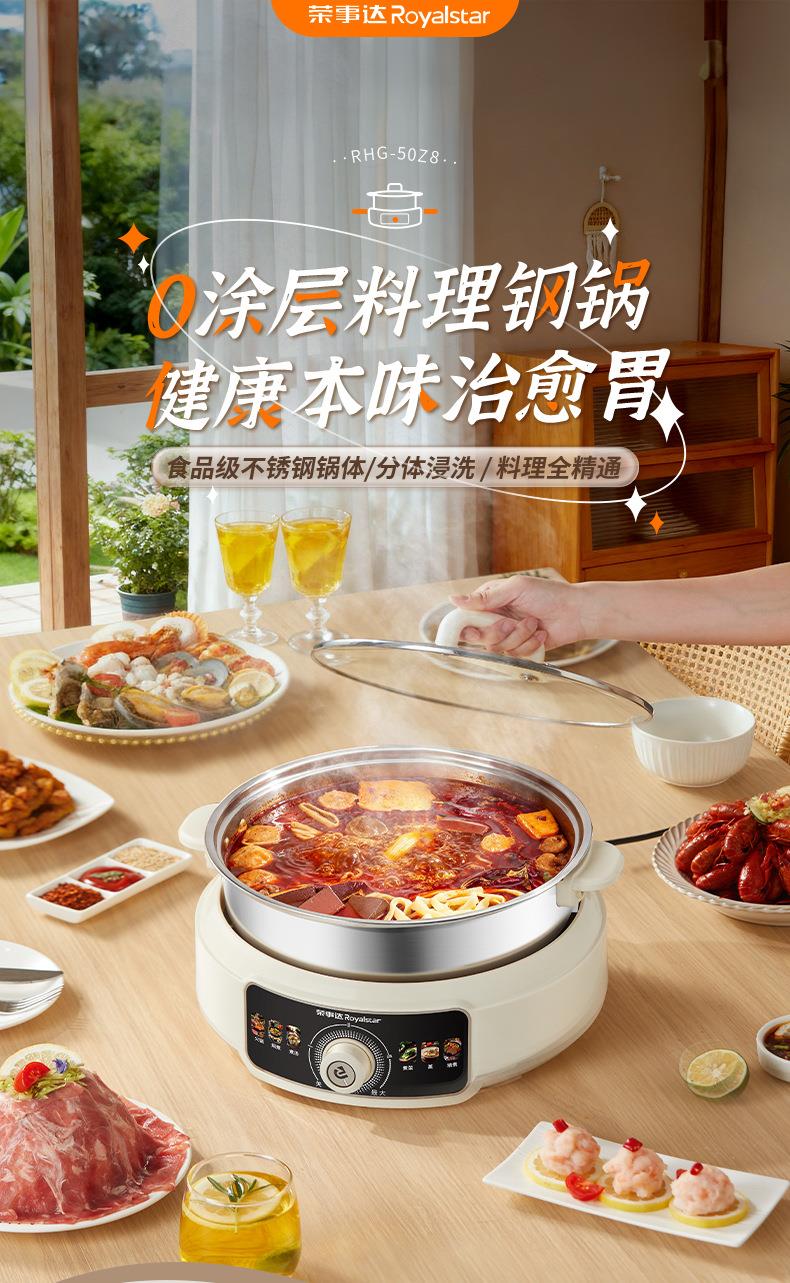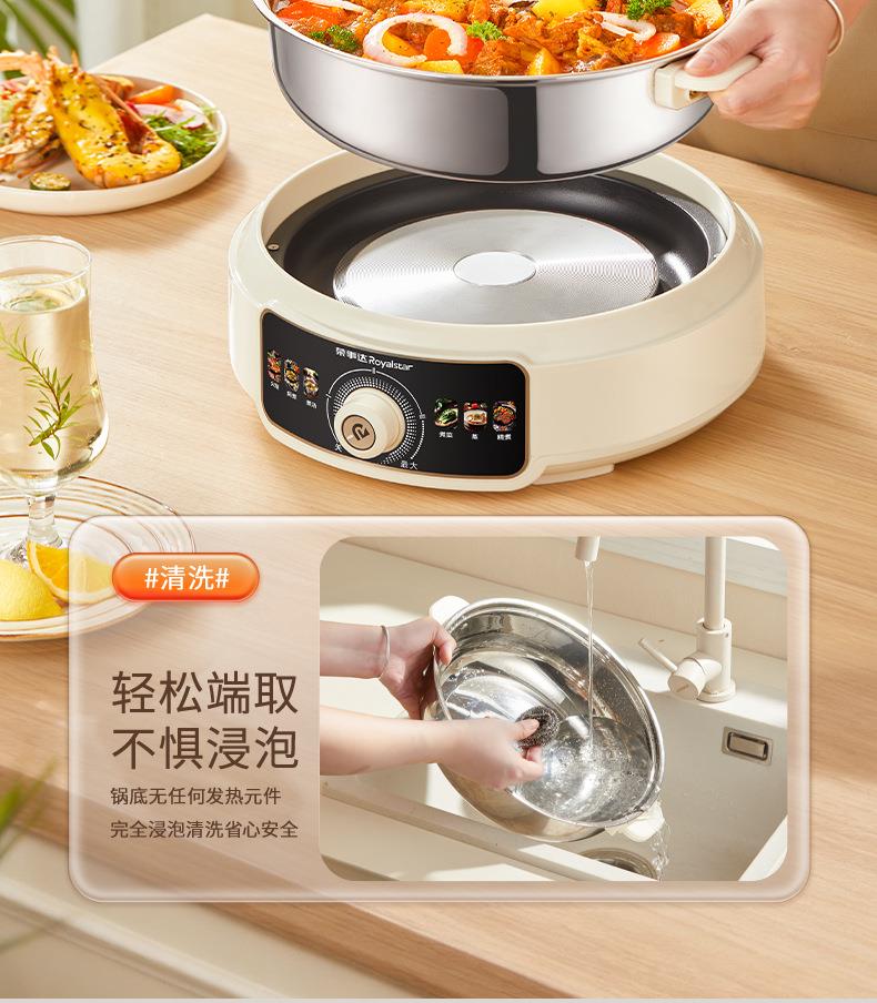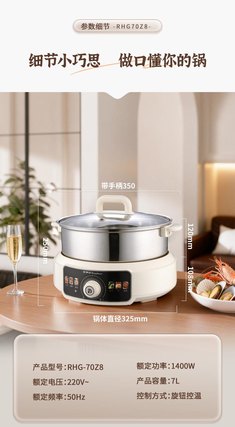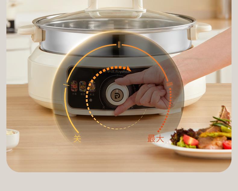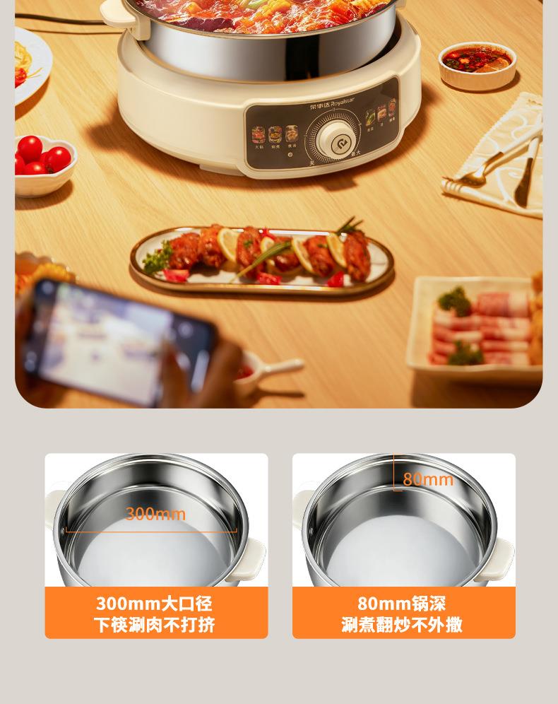 荣事达电火锅7L电煮锅分体式煎烤涮一体304不锈钢电热锅RHG-70Z8