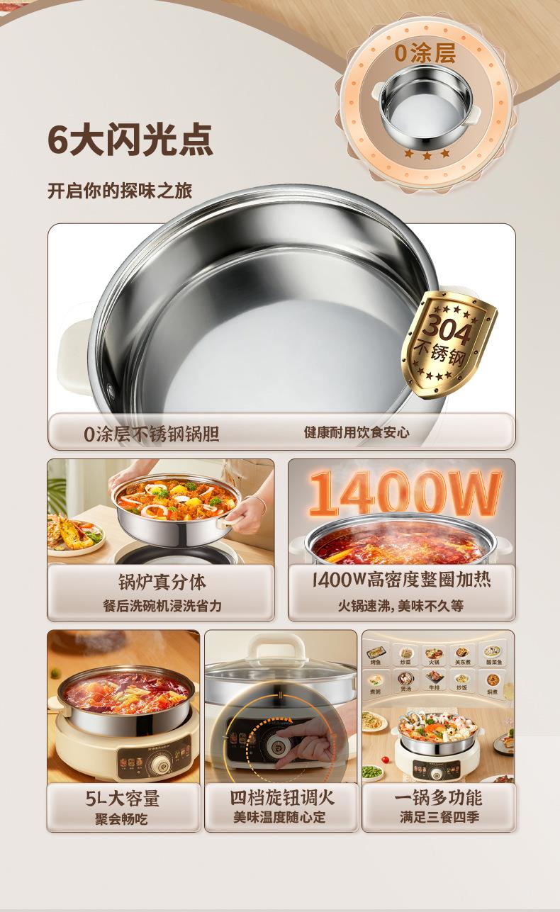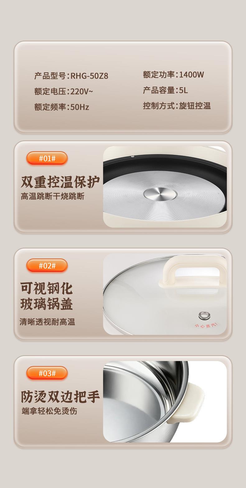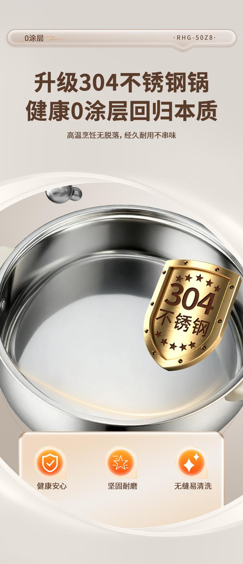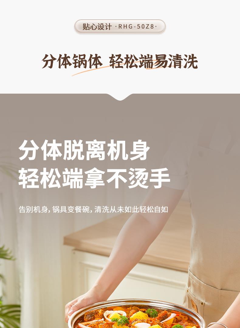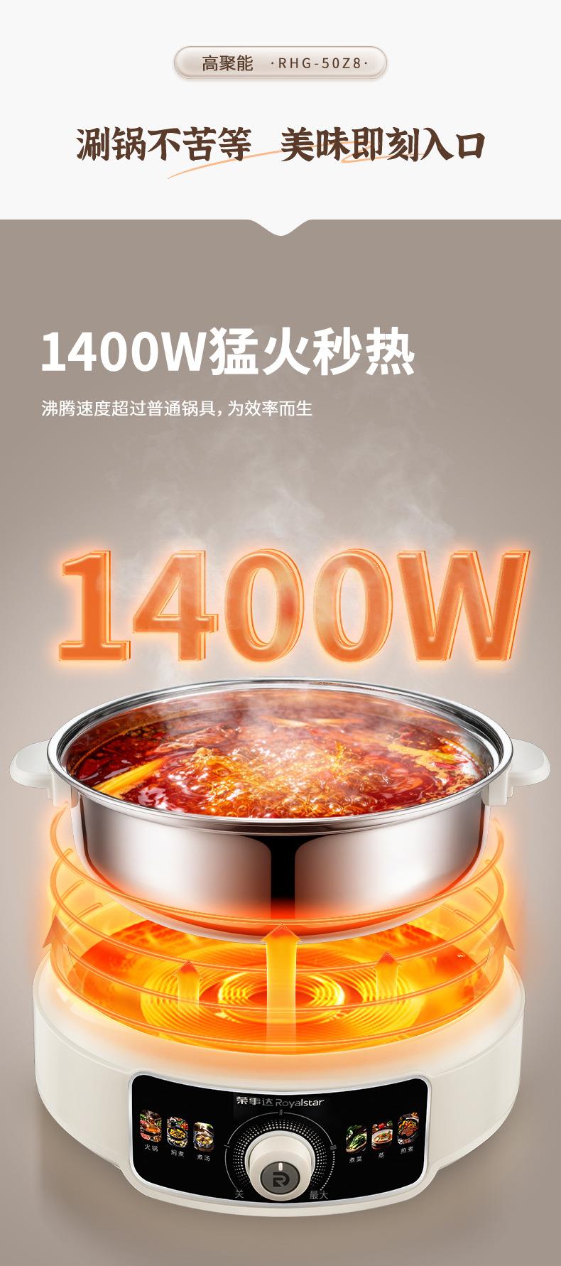 荣事达电火锅7L电煮锅分体式煎烤涮一体304不锈钢电热锅RHG-70Z8