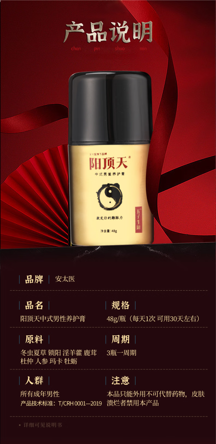 安太医【阳顶天2代】男士养护膏男性软膏喷雾男用延时延迟持久涂抹硬挺