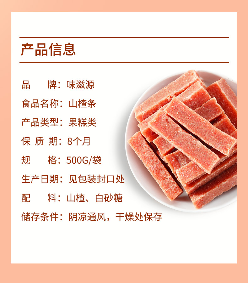 味滋源 山楂条、山楂卷、山楂片500g袋果丹皮 【分销】