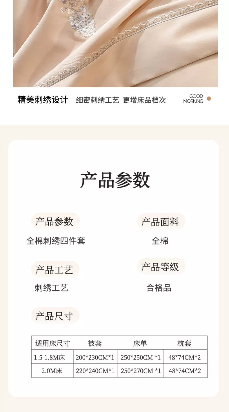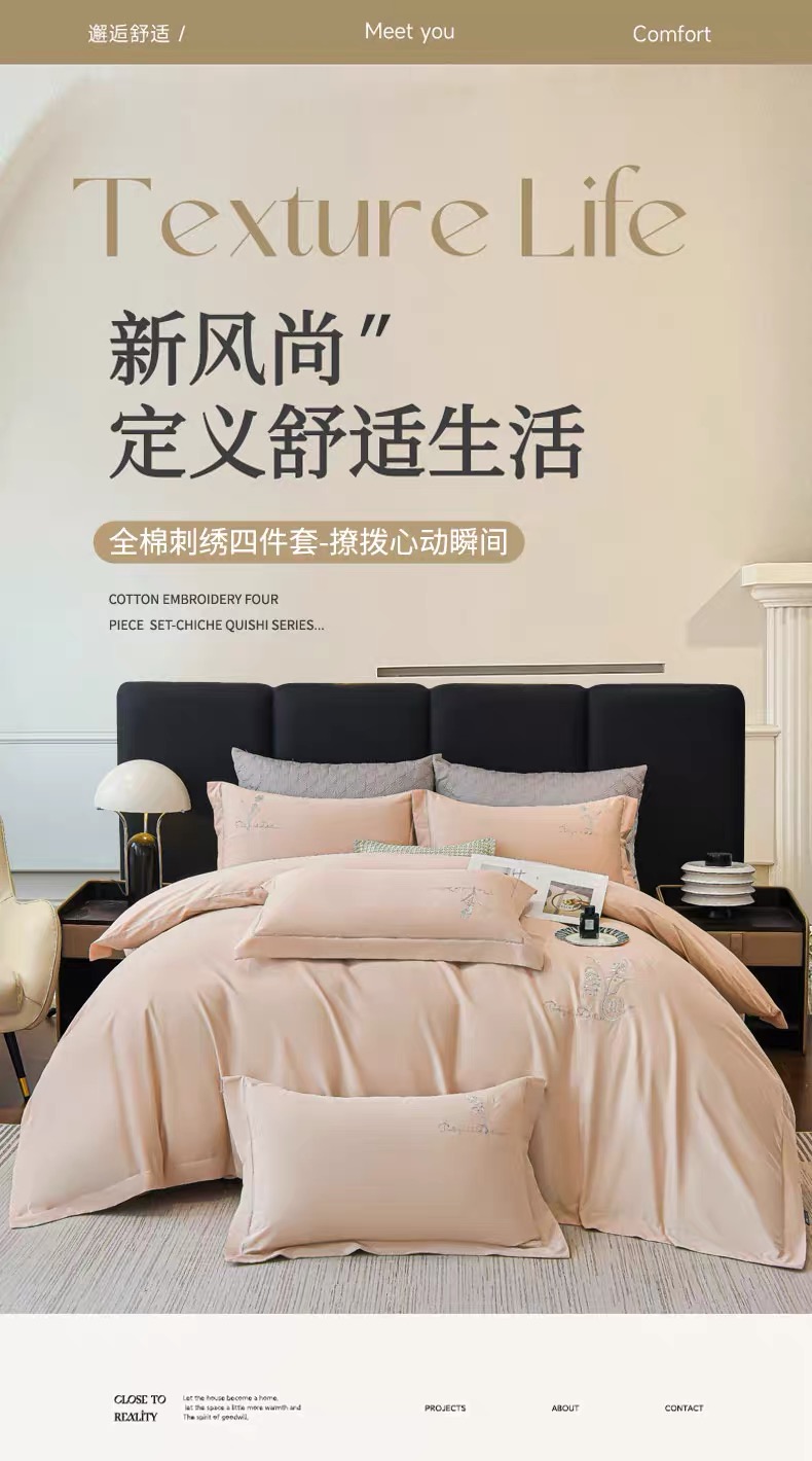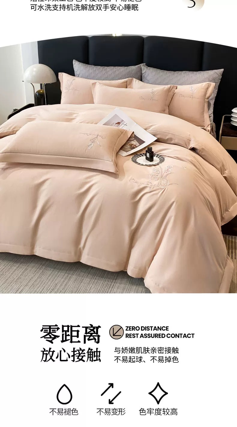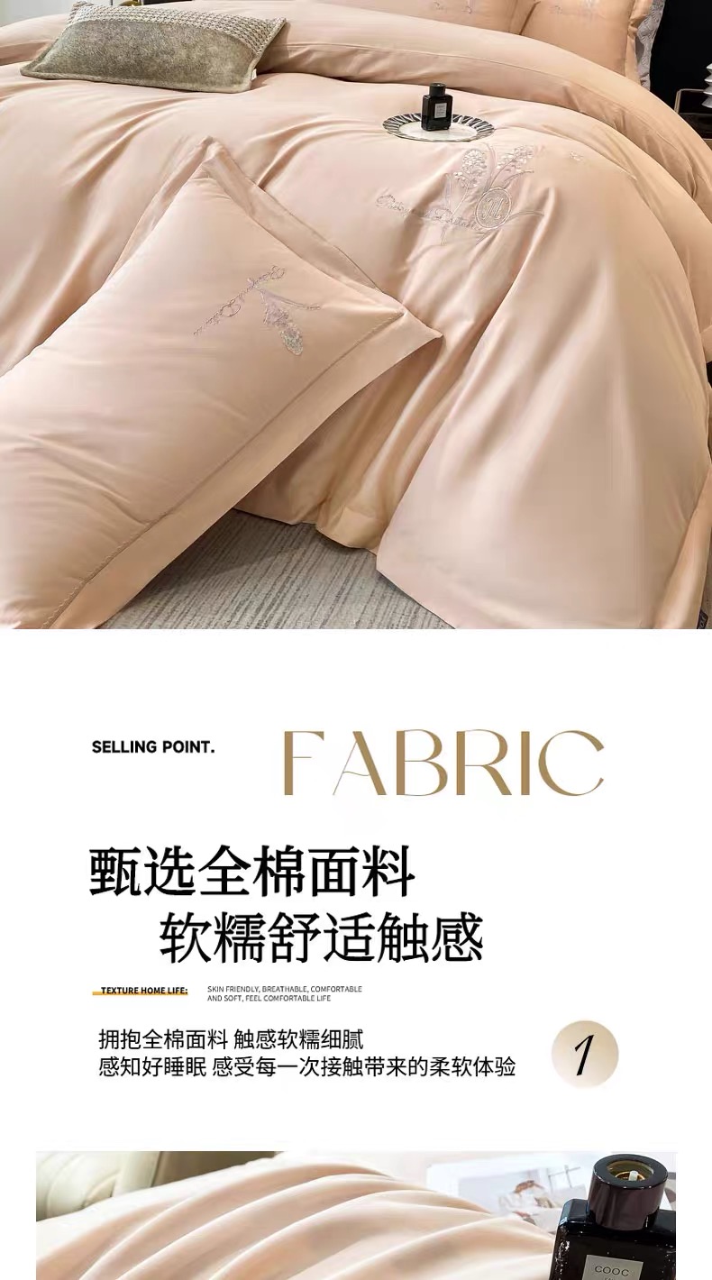 A类冬季纯棉加厚磨毛四件套优兰朵轻奢全棉刺绣被套床上用品G117800040