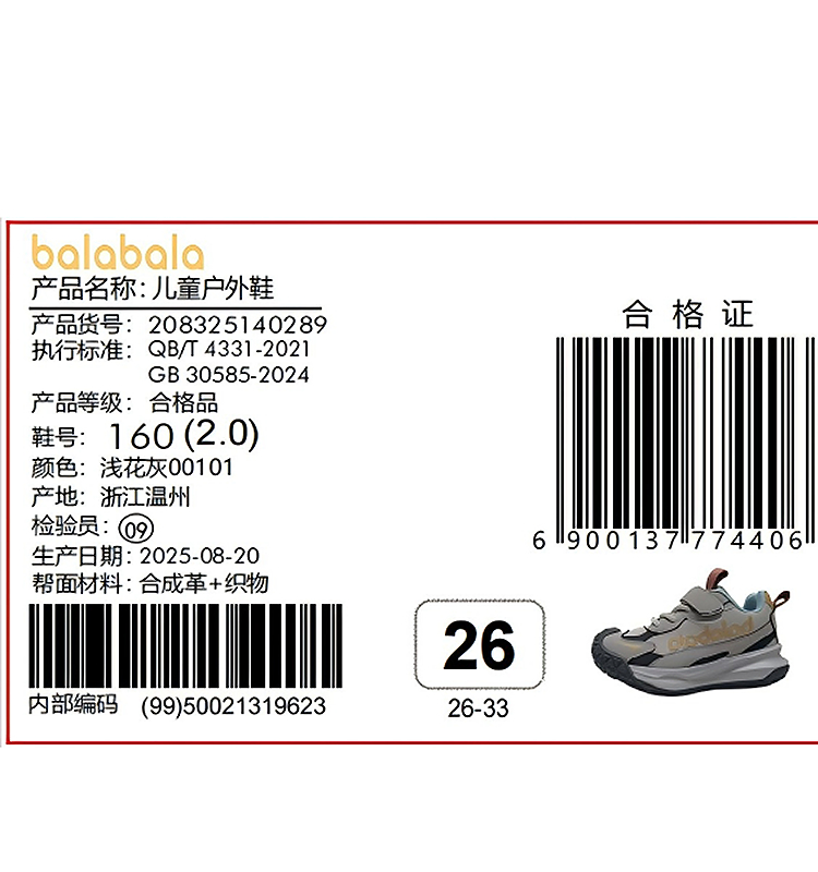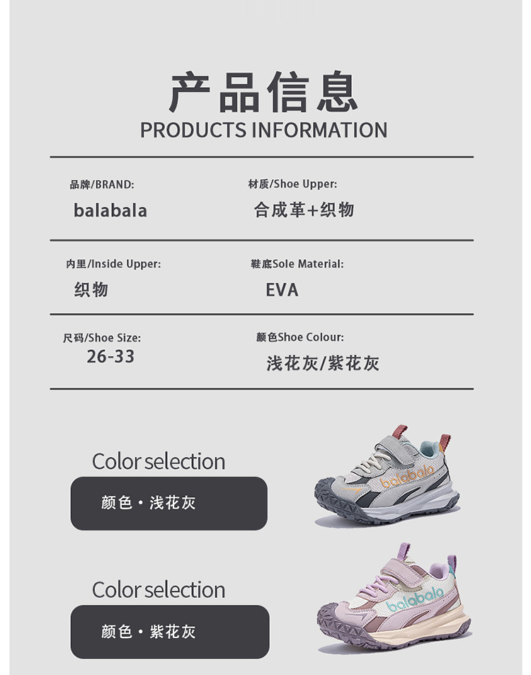 巴拉巴拉童鞋儿童运动鞋男童女童户外鞋春秋2025新款透气鞋子潮流