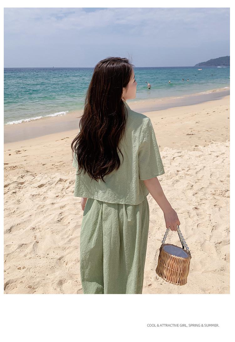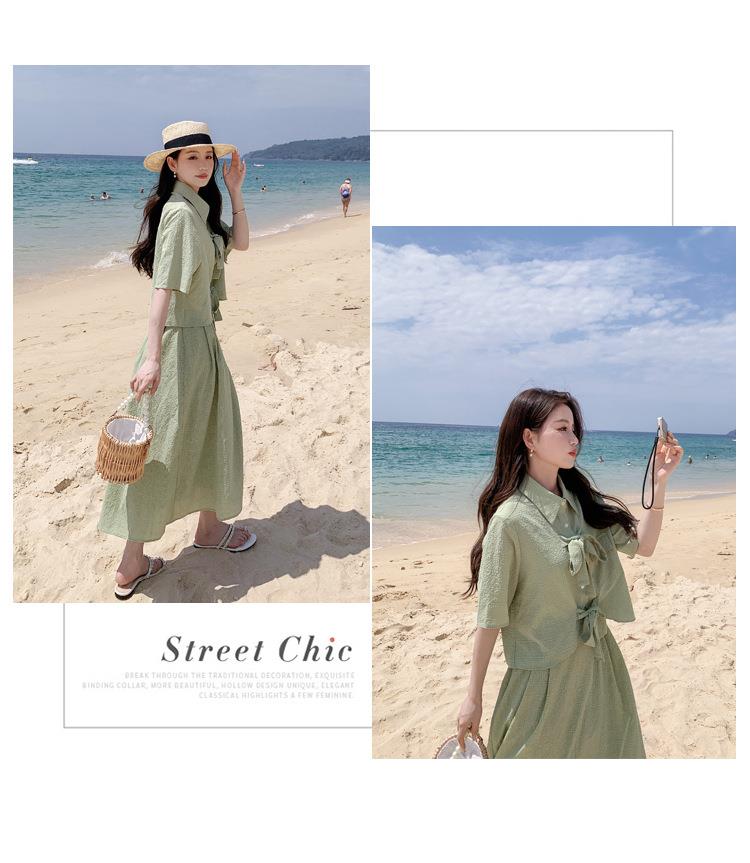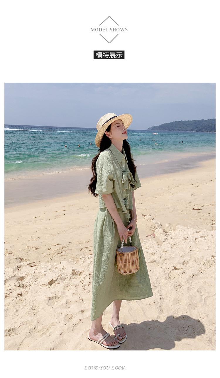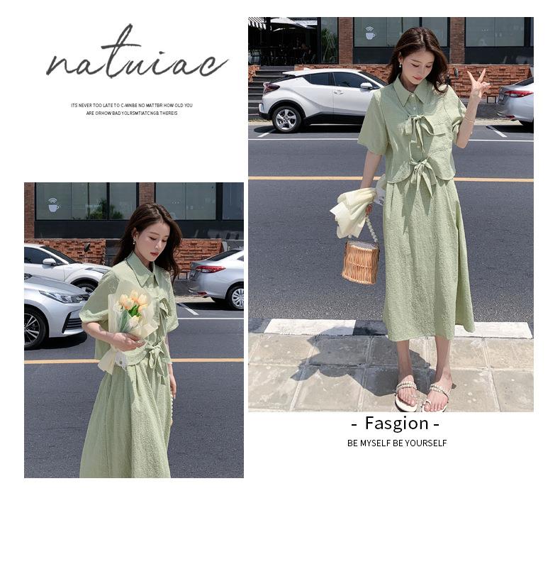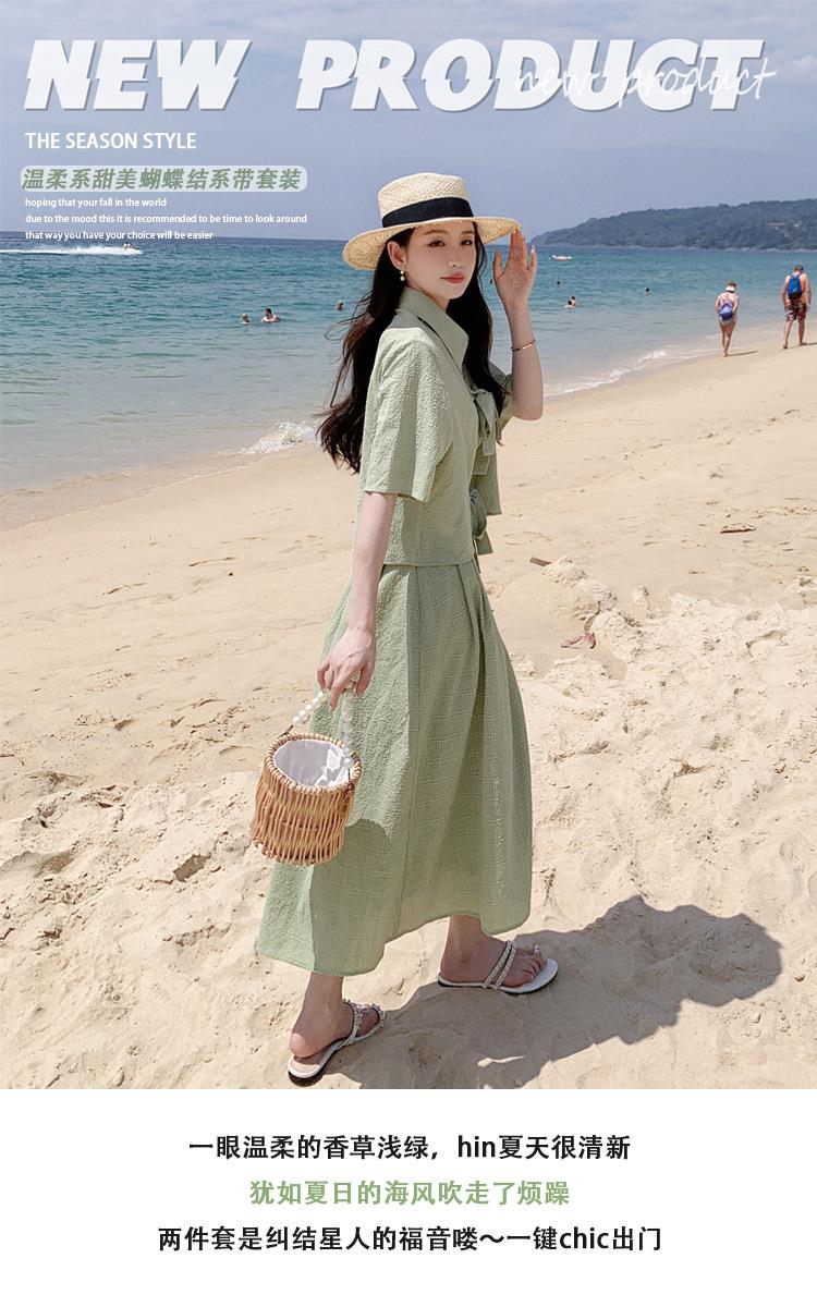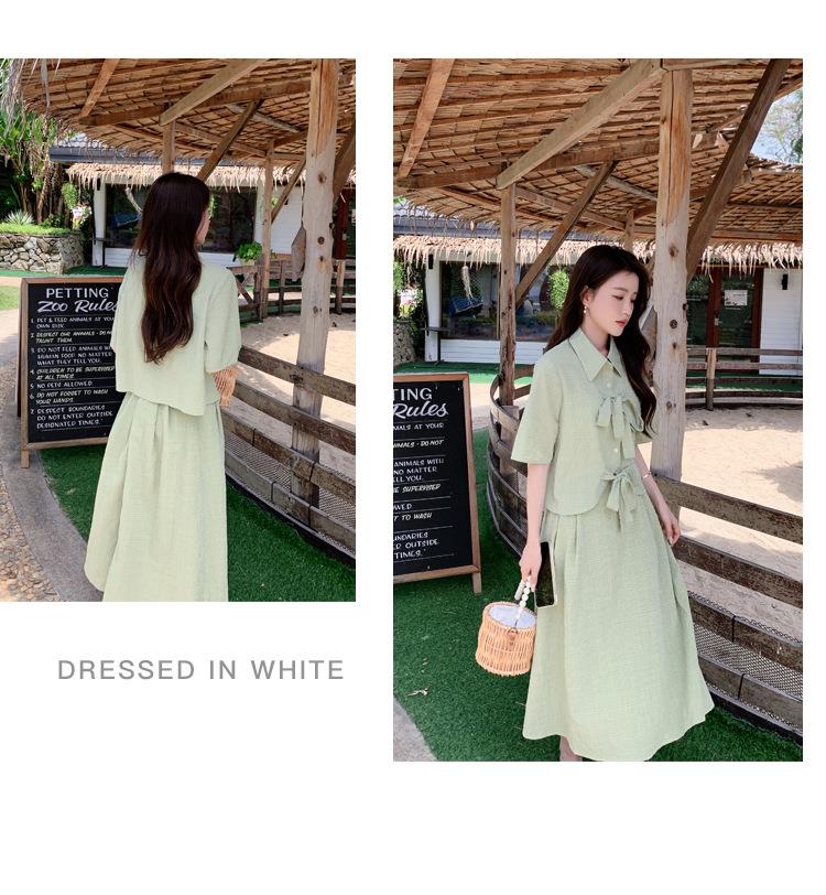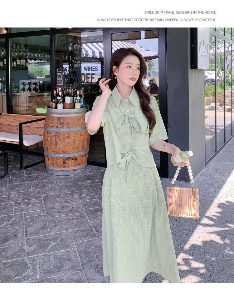 法式小个子温柔风两件套女2023年夏季新款时尚小衫高腰半身裙套装