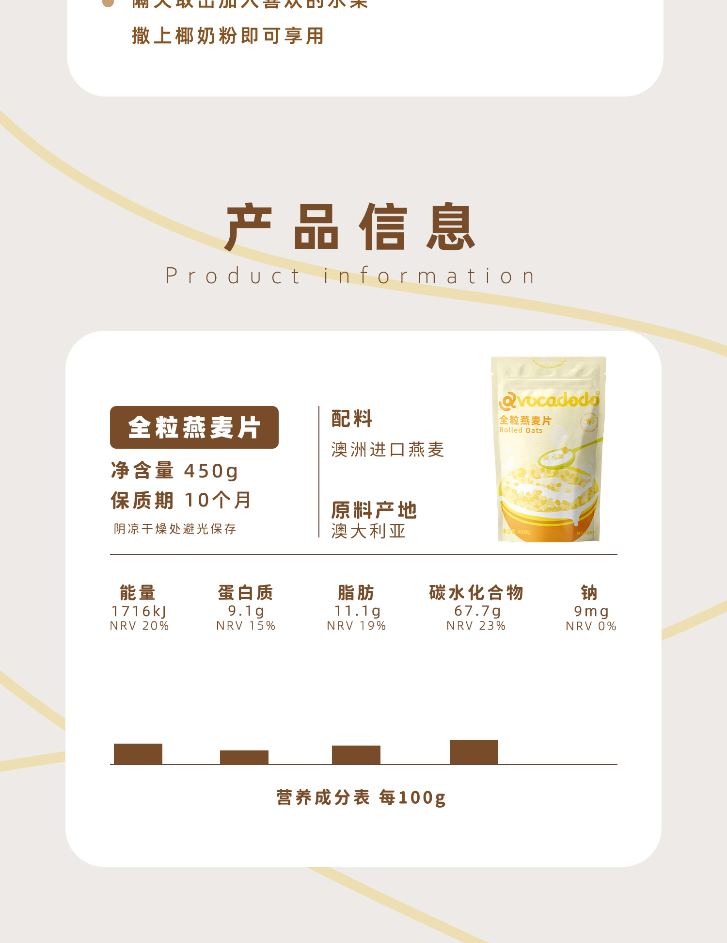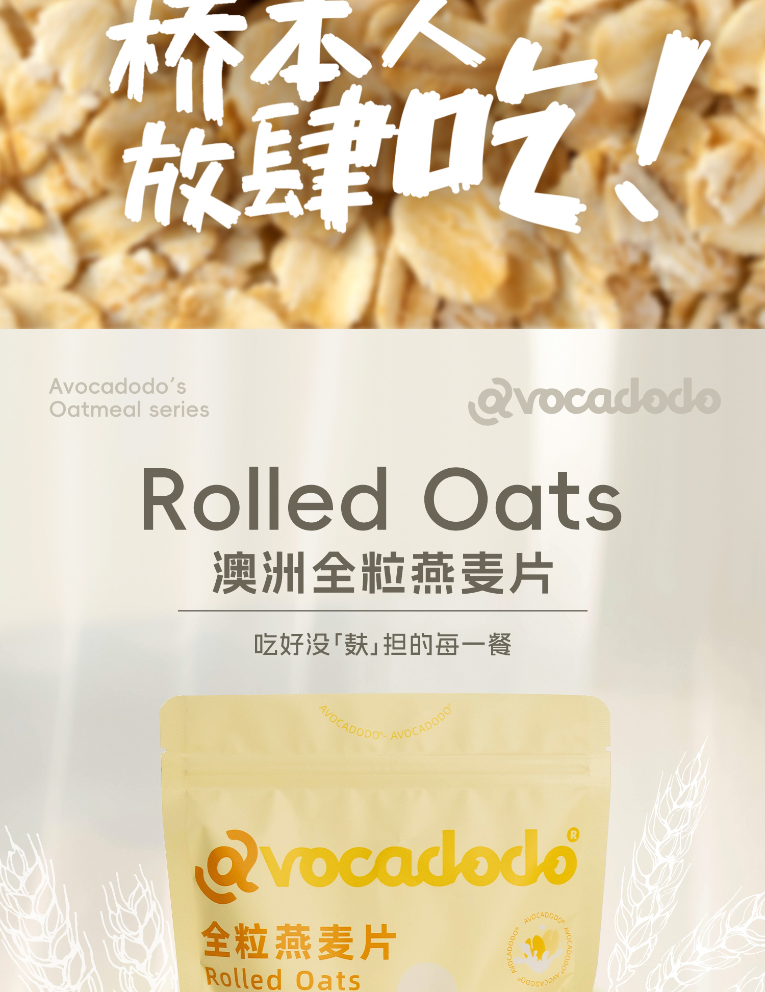 Avocadodo澳洲大颗全粒老式纯燕麦片无小麦麸质早餐牛油果果桥本