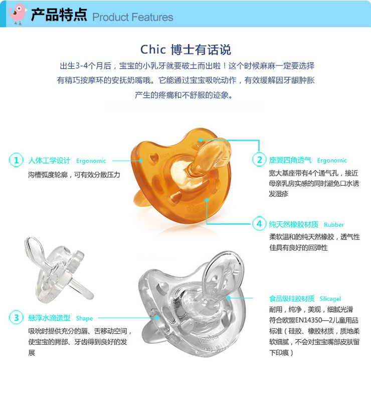 智高彩色柔软全硅胶奶嘴6-12M(蓝色)00002712210000