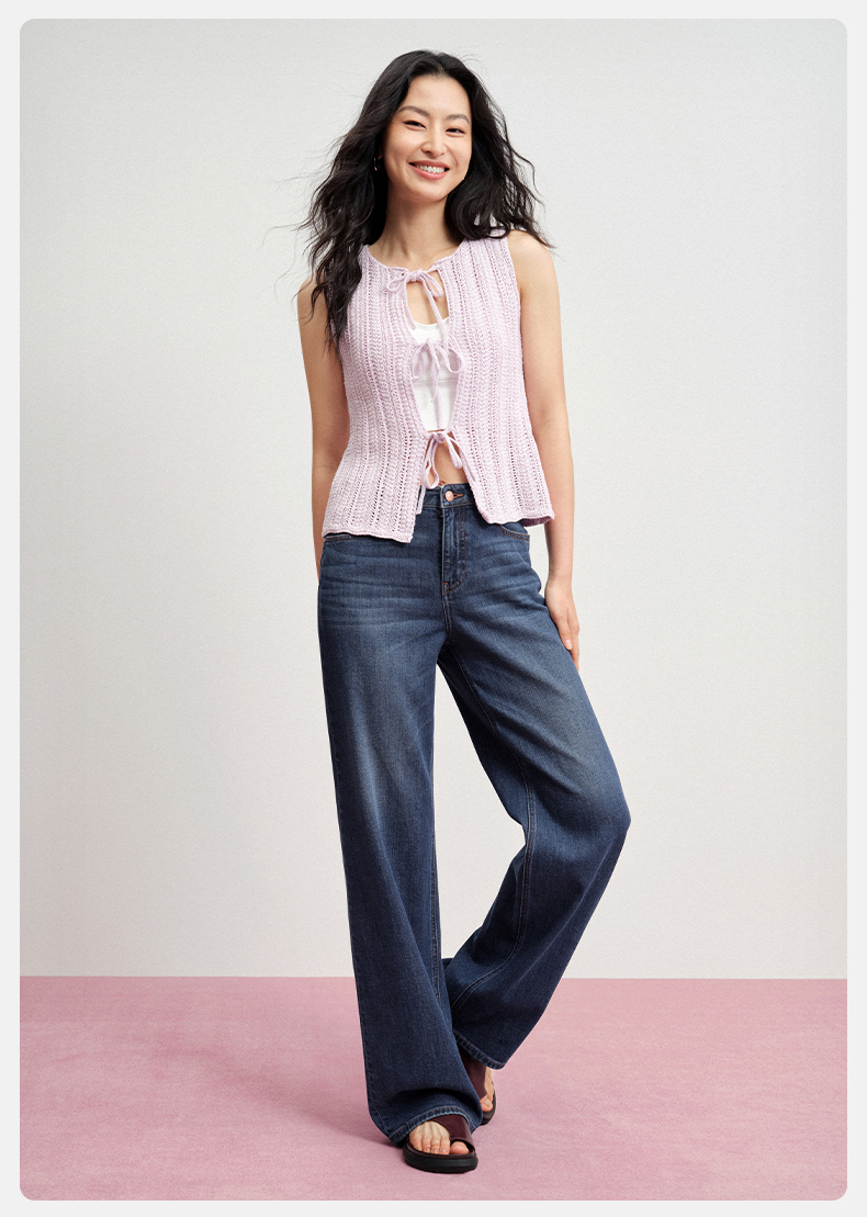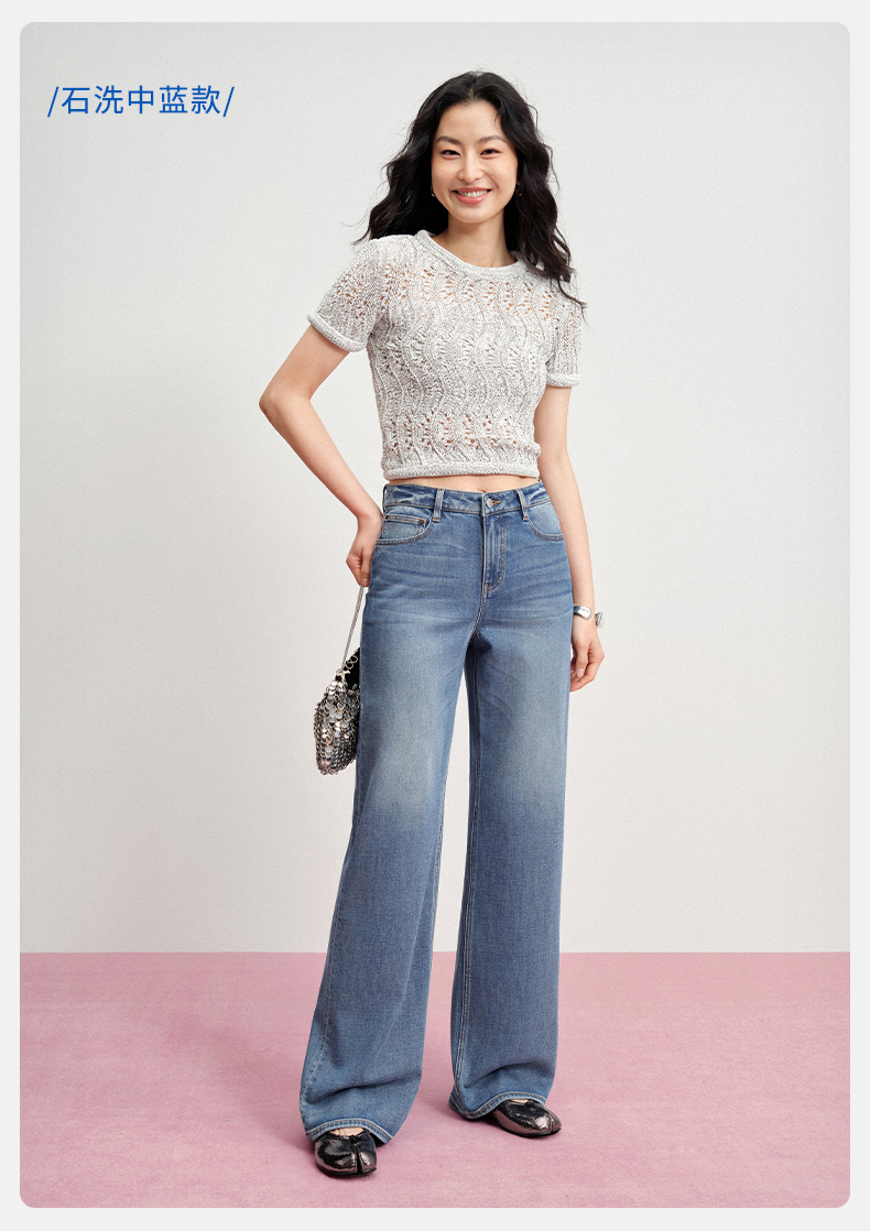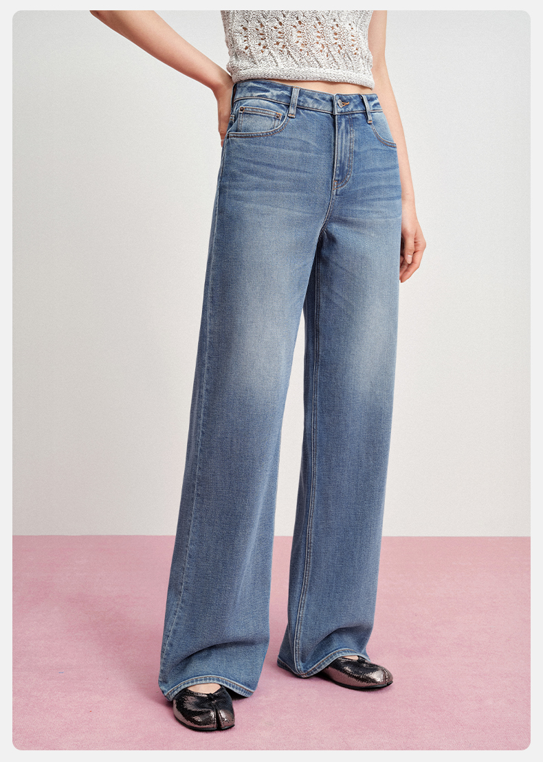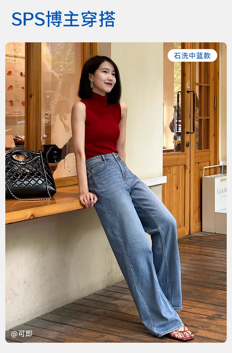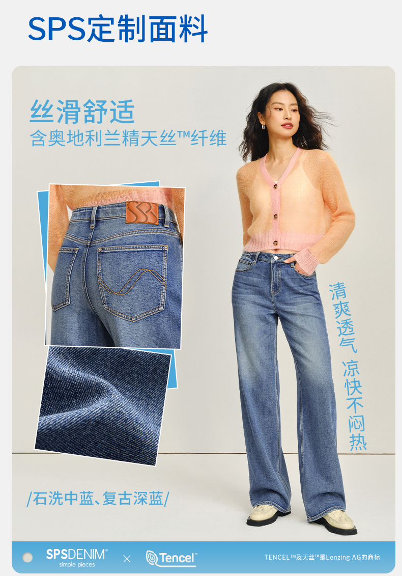 【天丝凉感宽松薯条】simplepieces夏新款SPS牛仔裤女直筒拖地裤
