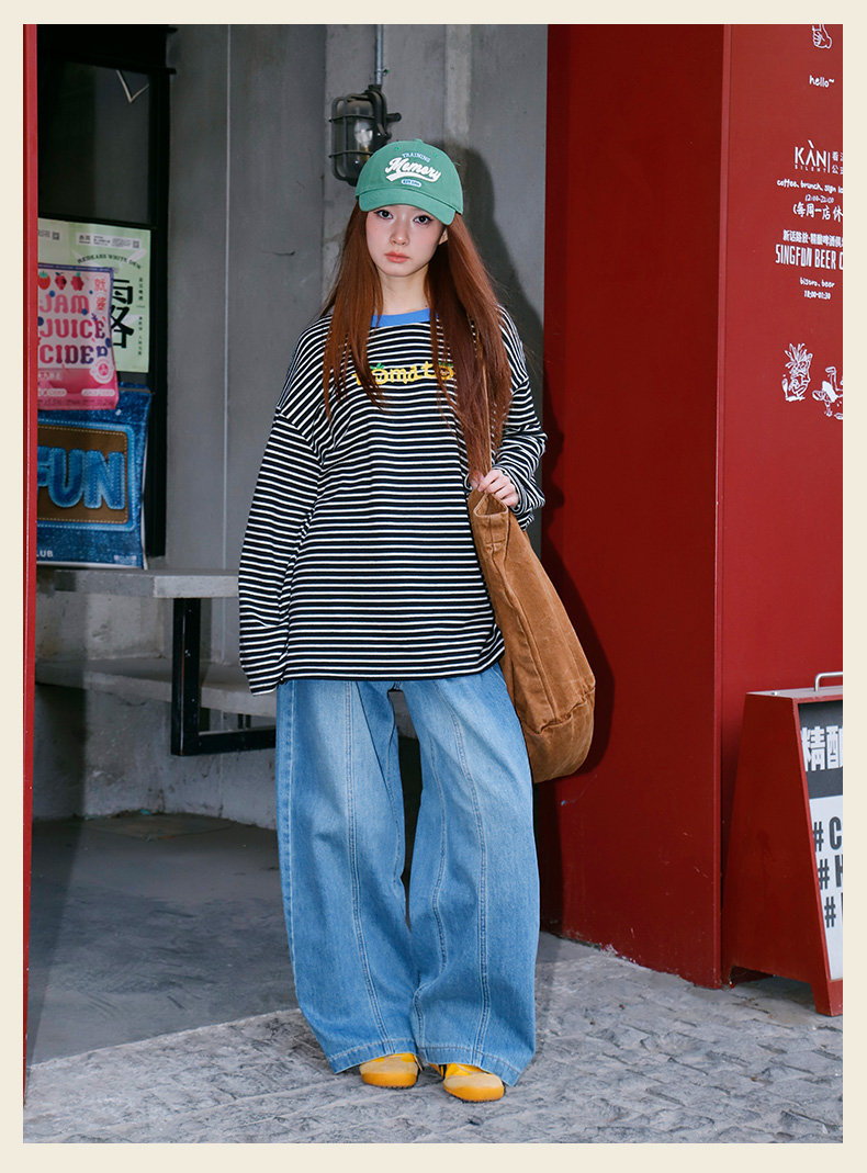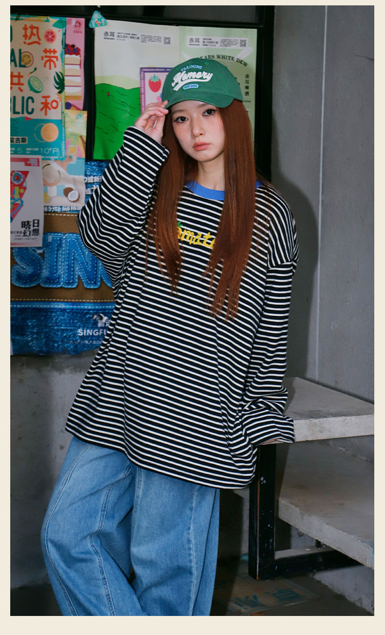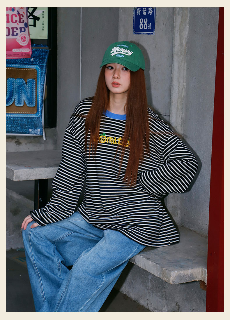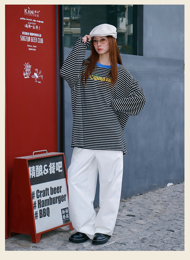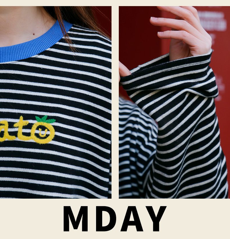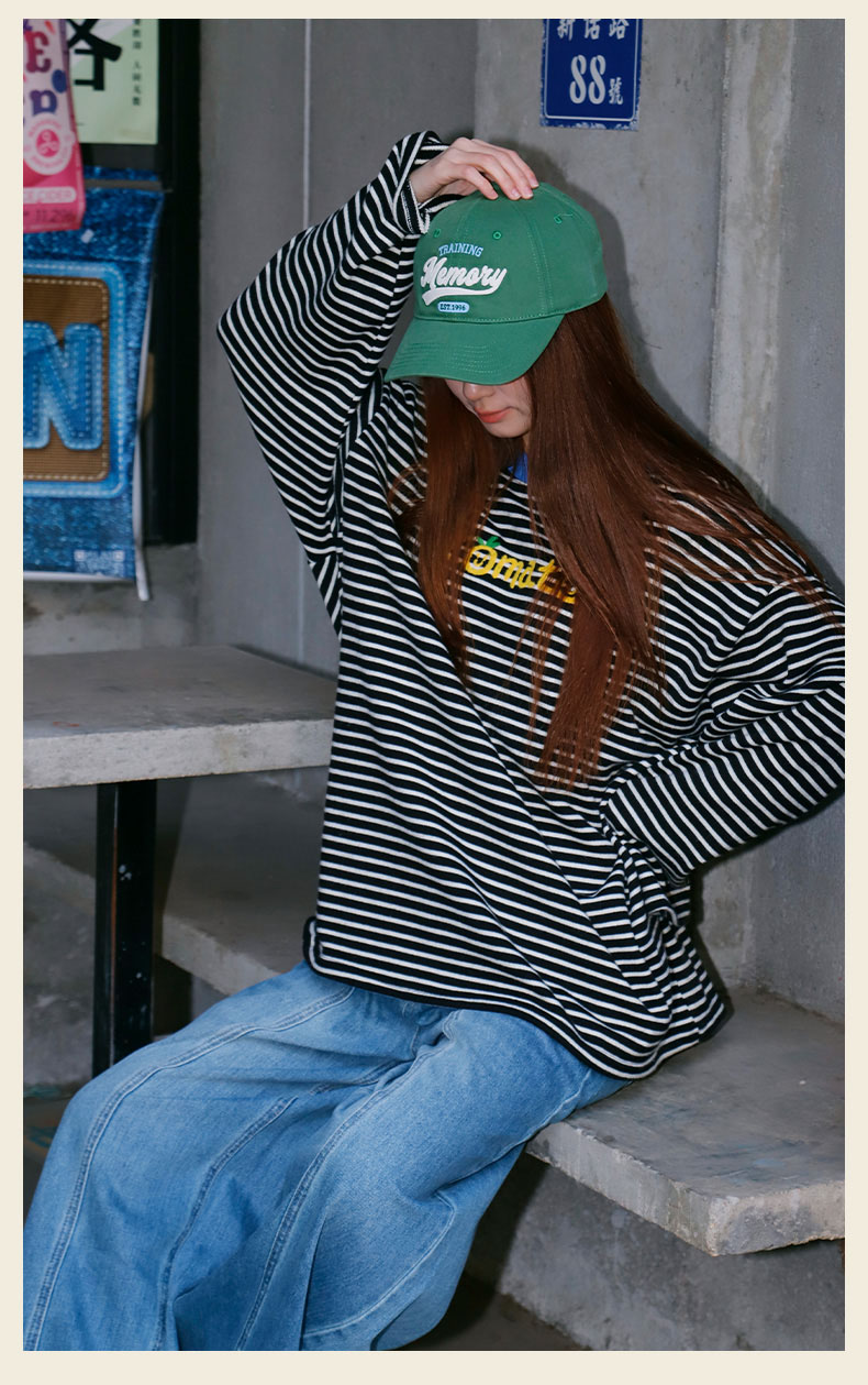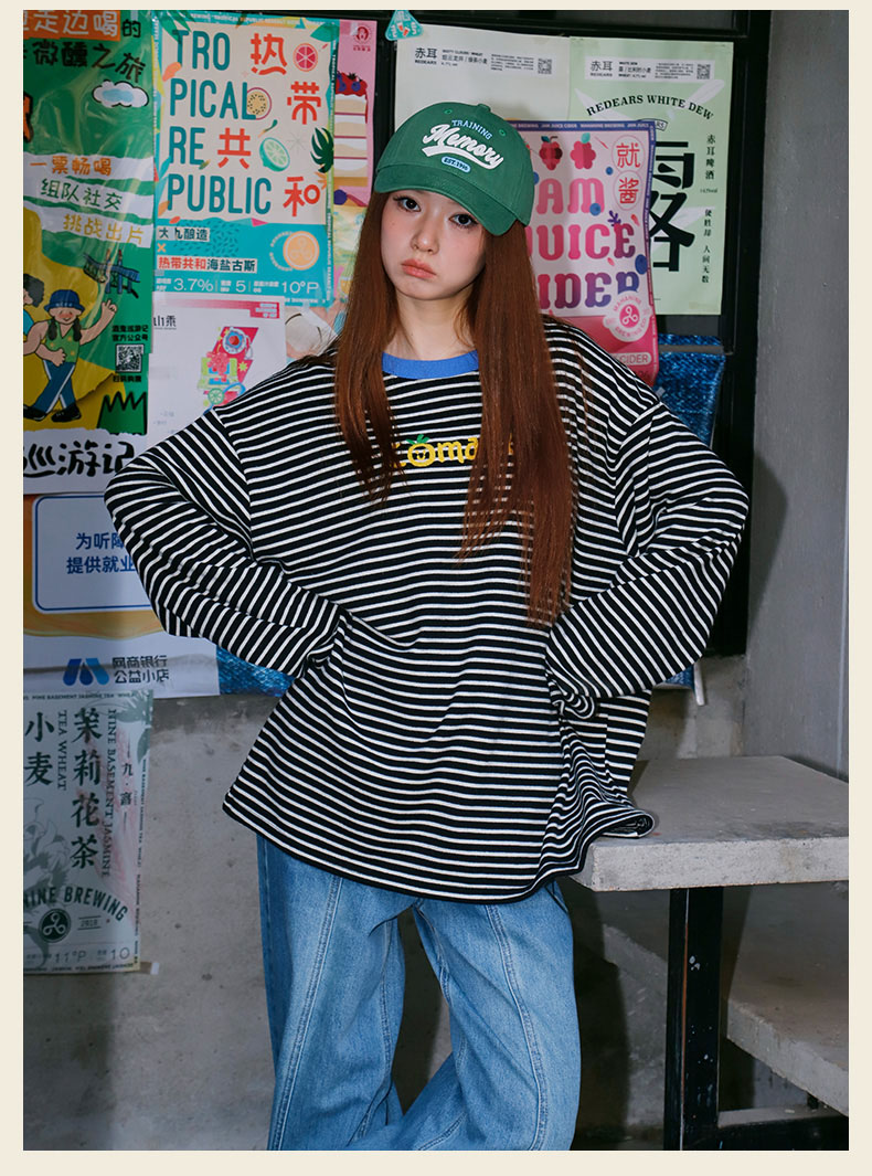 宽松休闲百搭条纹字母T恤-纪念日百货门店同款169262401