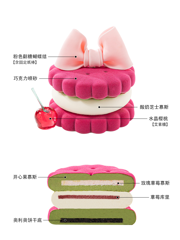 爱丽娜的曲奇开心果玫瑰草莓慕斯蛋糕 | FALANC CAKE