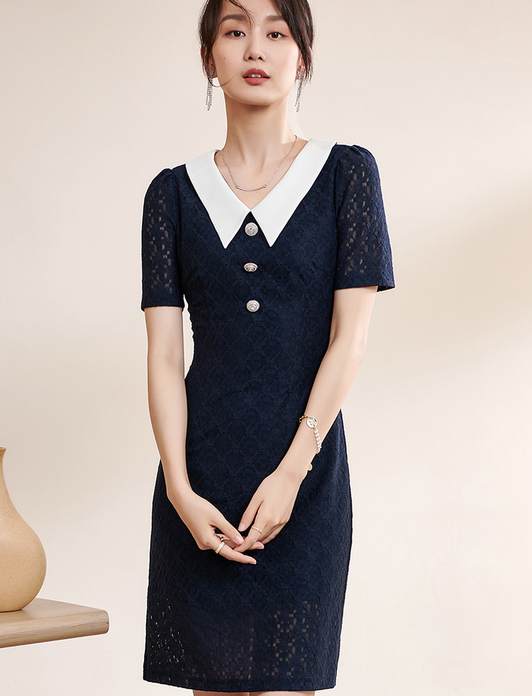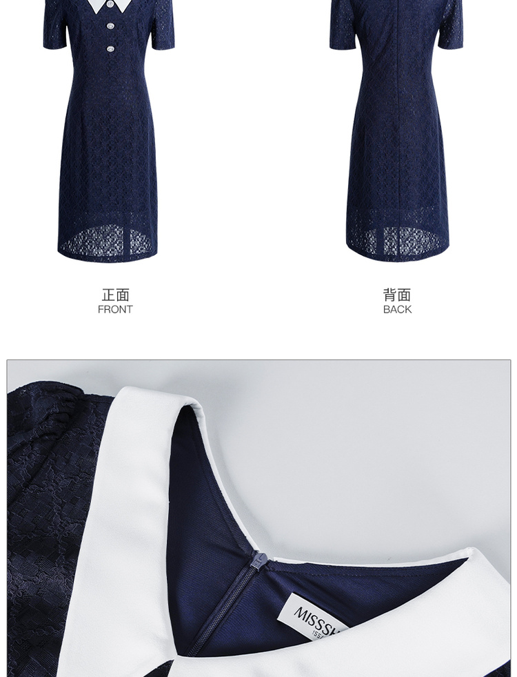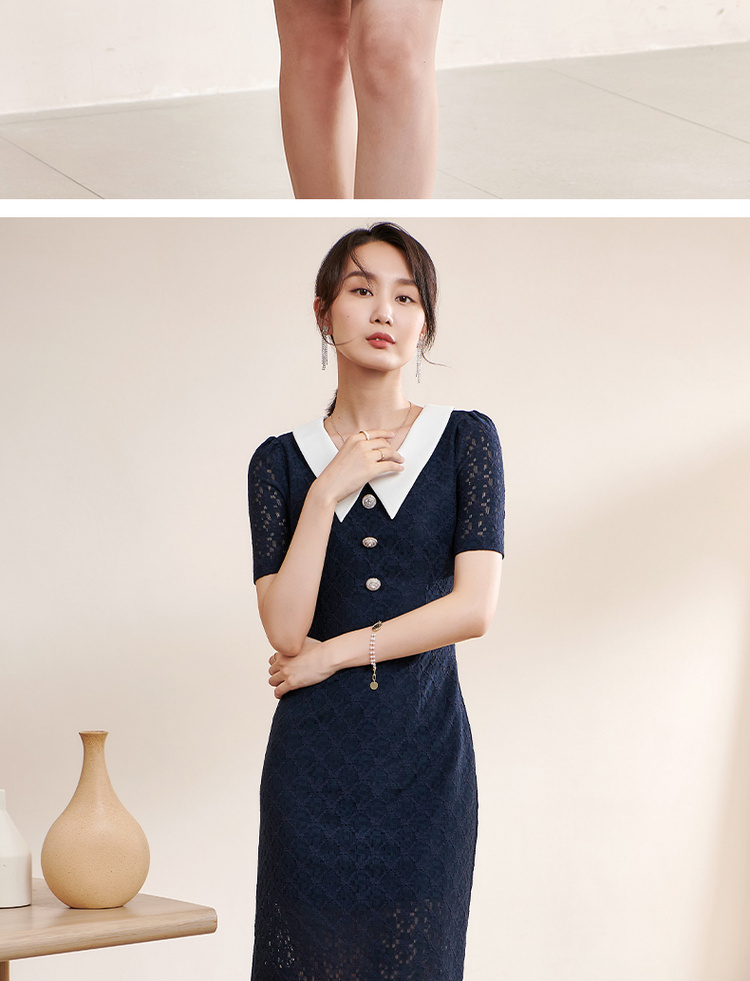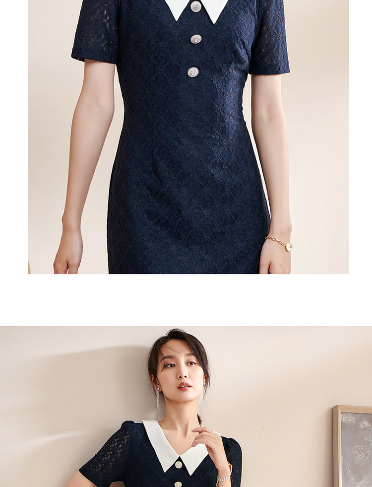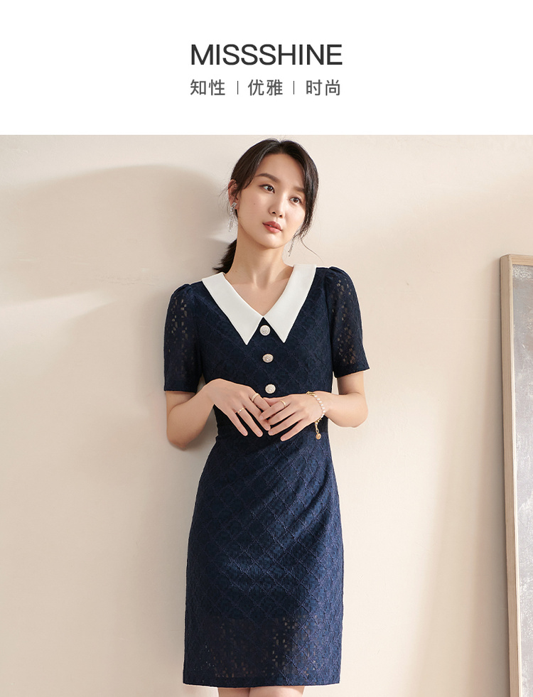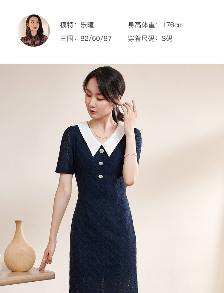 剩S 米思阳夏季新款气质减龄娃娃领修身显瘦短袖蕾丝连衣裙1311