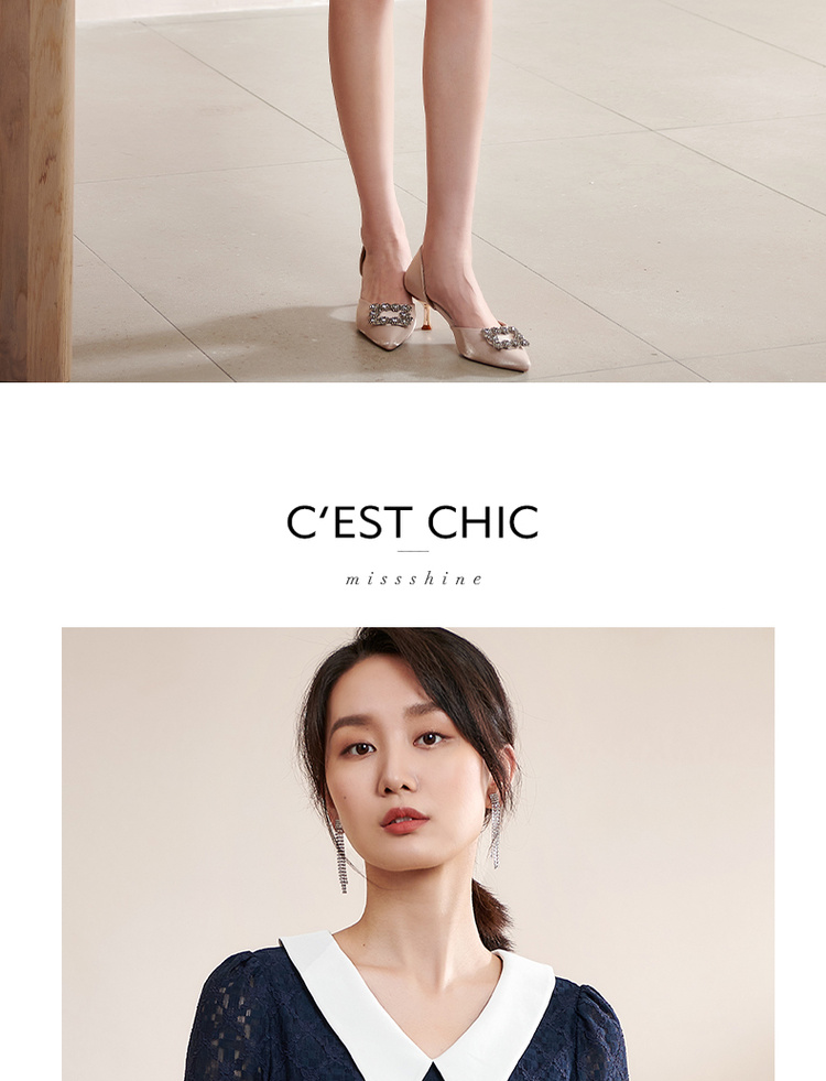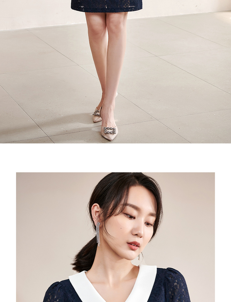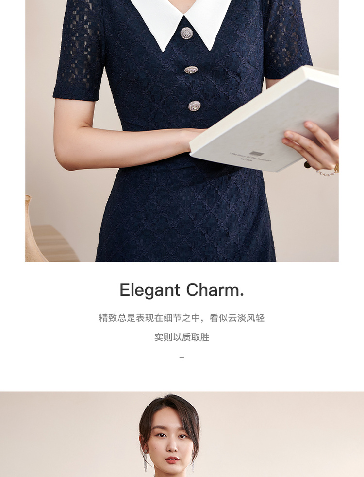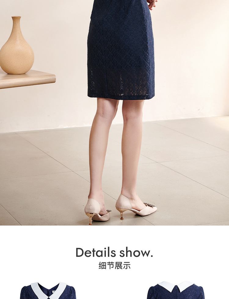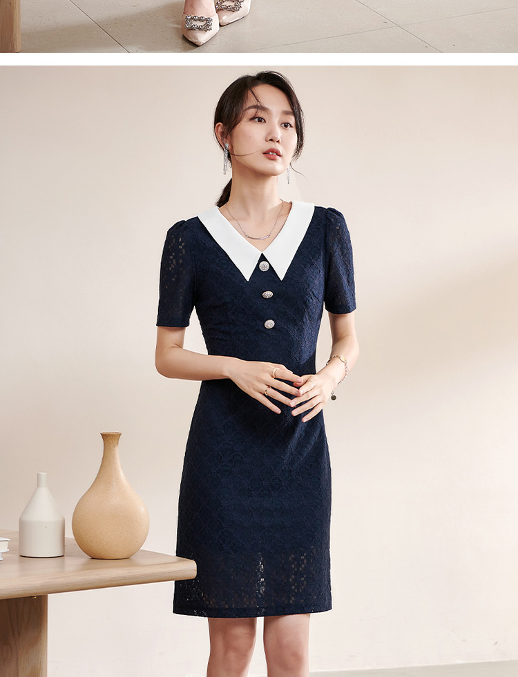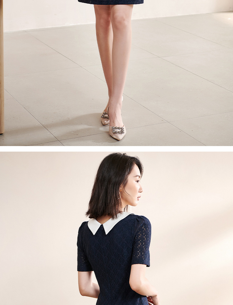 剩S 米思阳夏季新款气质减龄娃娃领修身显瘦短袖蕾丝连衣裙1311