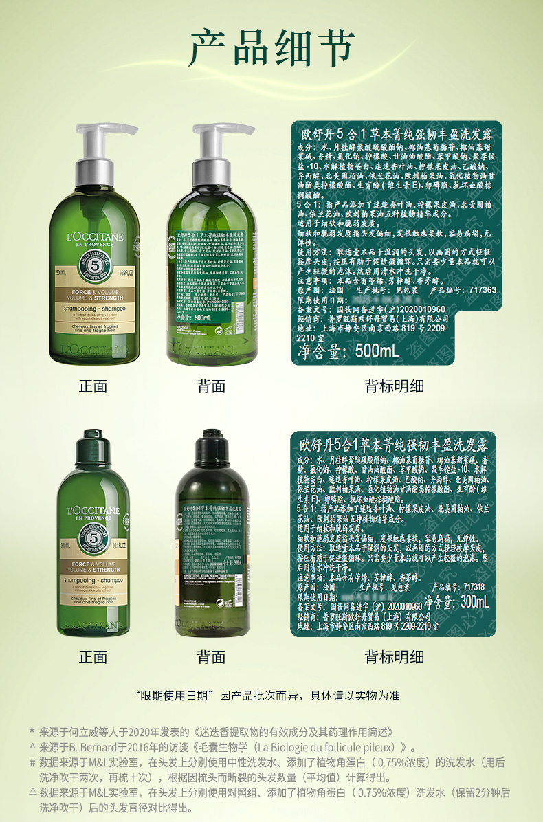 L'OCCITANE欧舒丹 5合1草本菁纯强韧丰盈洗发露