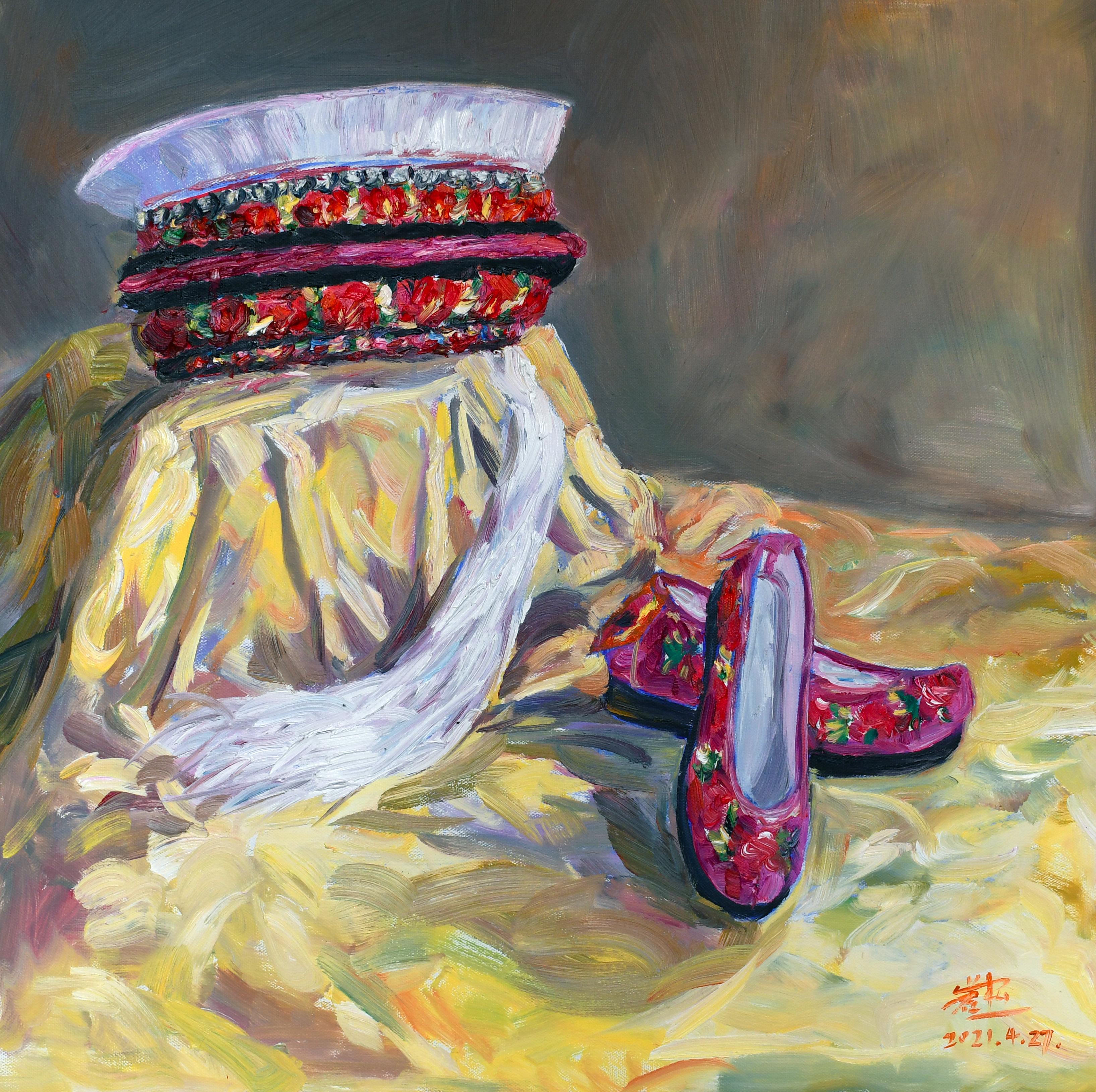 油画《白族饰品之二》