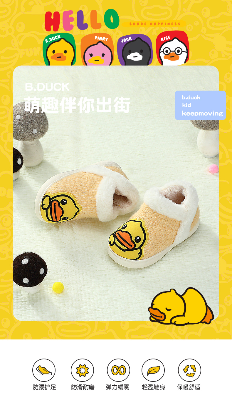 B.Duck小黄鸭儿童童鞋冬季24-32码棉拖男女童 B4210930