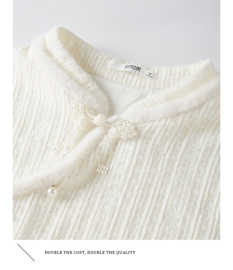 【专属特价】熙世界2025秋冬款中式宫廷风磨毛仿水貂毛小立领蕾丝打底衫上衣