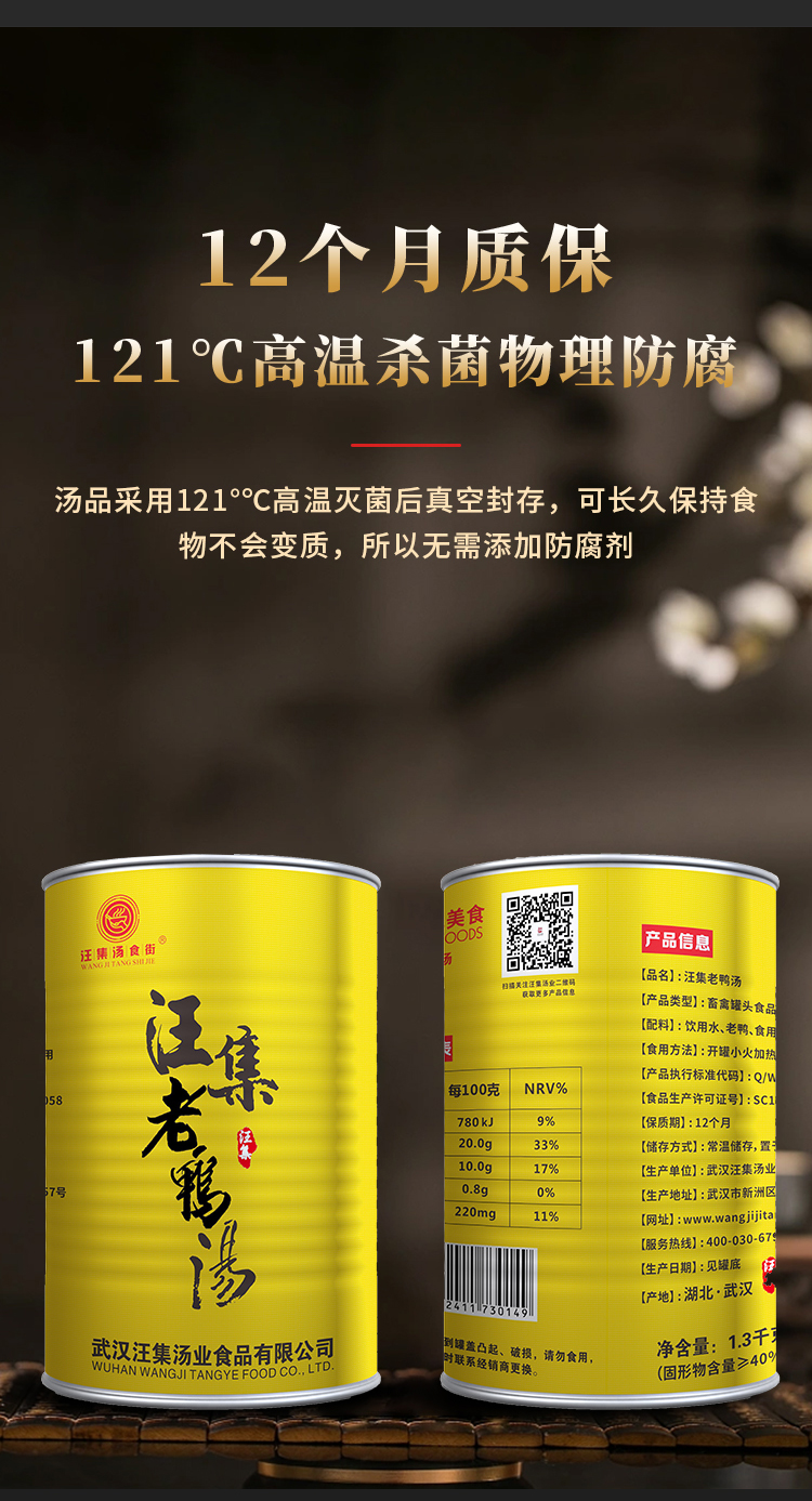 【严选】【个头较大新鲜老鸭 0味精0添加0防腐剂】汪集老鸭汤 汤汁浓厚醇香 鸭肉鲜嫩 老少皆宜 倒出加热即食1300g/罐(厂家直发)