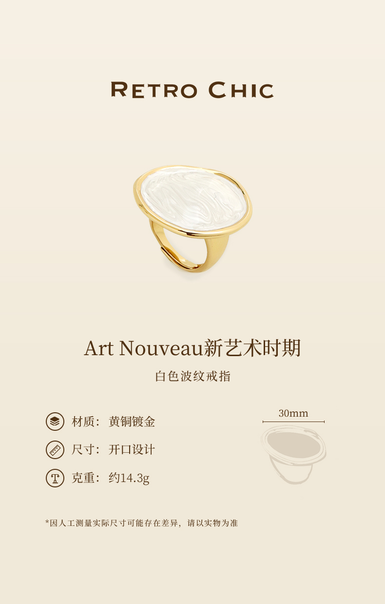 【李莎旻子同款】Art Nouveau新艺术时期 | 白色波纹戒指(活口)