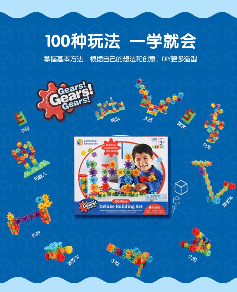 Learning Resources基础款齿轮积木100片儿童创意diy拼插益智玩具