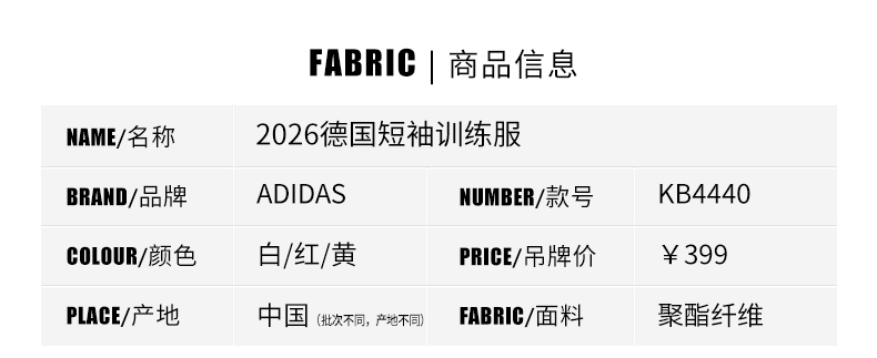 SFS阿迪达斯2026世界杯德国短袖训练服足球训练透气足球服KB4440