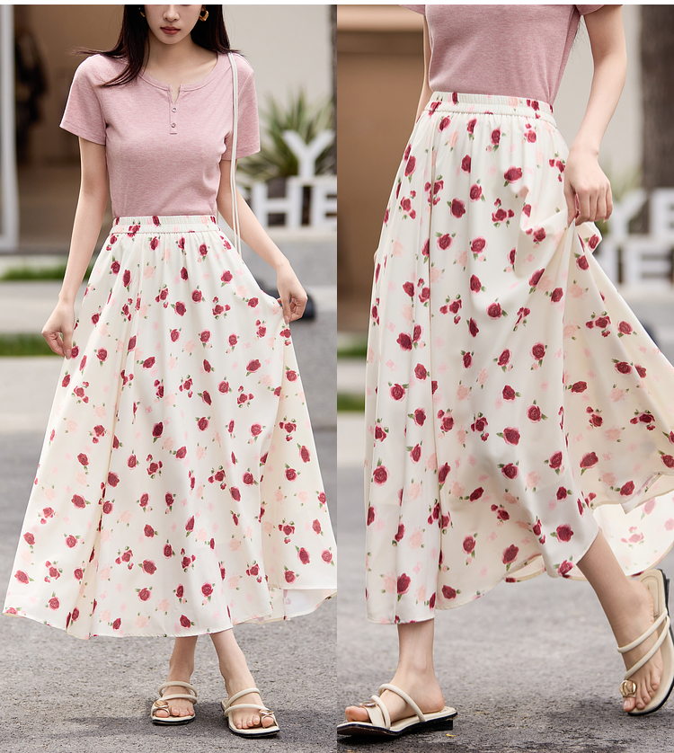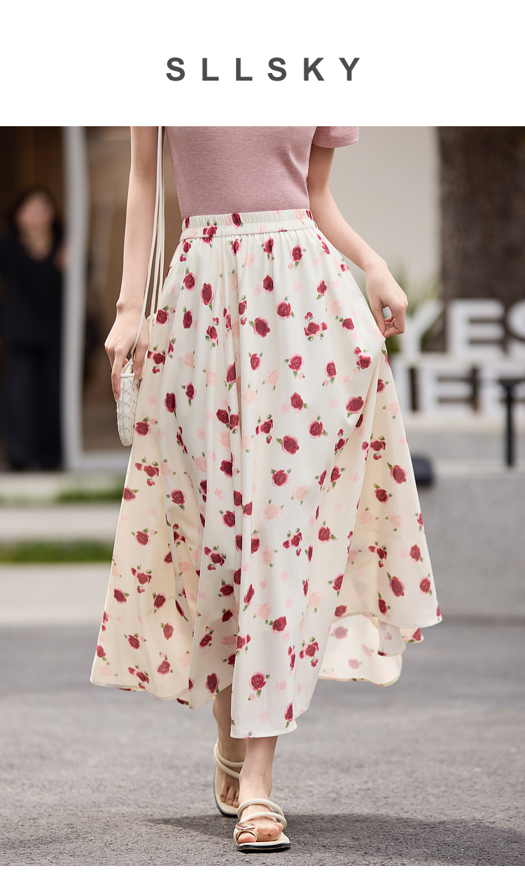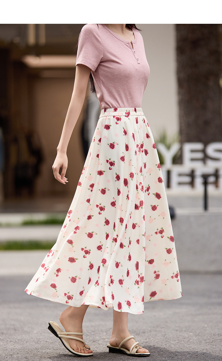 【专属特价】熙世界浪漫复古碎花半身裙女2025夏季新款可露丽穿搭高腰a字伞裙