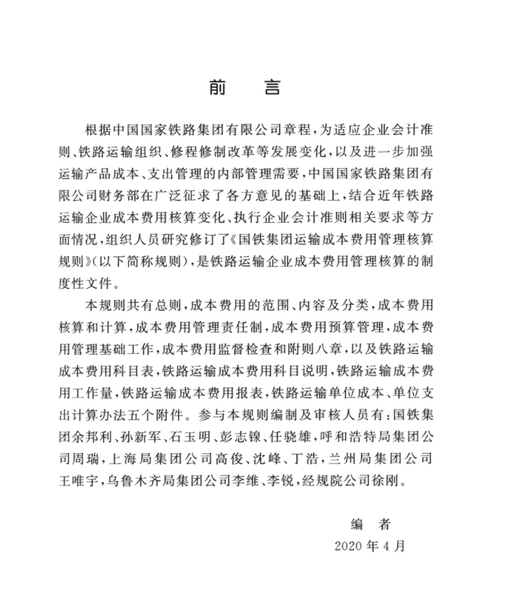 《国铁集团运输成本费用管理核算规则》主要内容包括八章:第一章总则,第二章成本费用的范围、内容和分类,第三章成本费用核算和计算,第四章成本费用管理责任制,第五章成本费用预算管理,第六章成本费用管理基础工作,第七章成本费用监督检查,第八章附则。