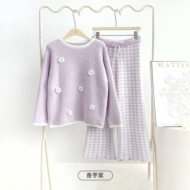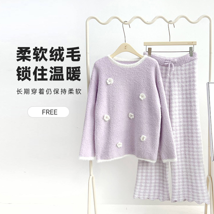 都市丽人睡衣半边绒睡衣女士家居服长袖长裤半边绒套装LHH2S1
