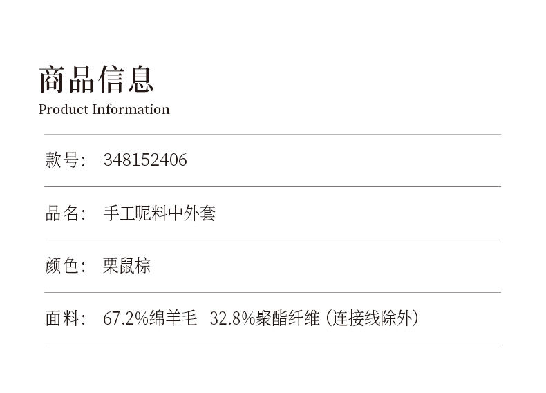 NUTS秋冬季设计感学院风减龄直筒双面毛呢大衣外套女348152406