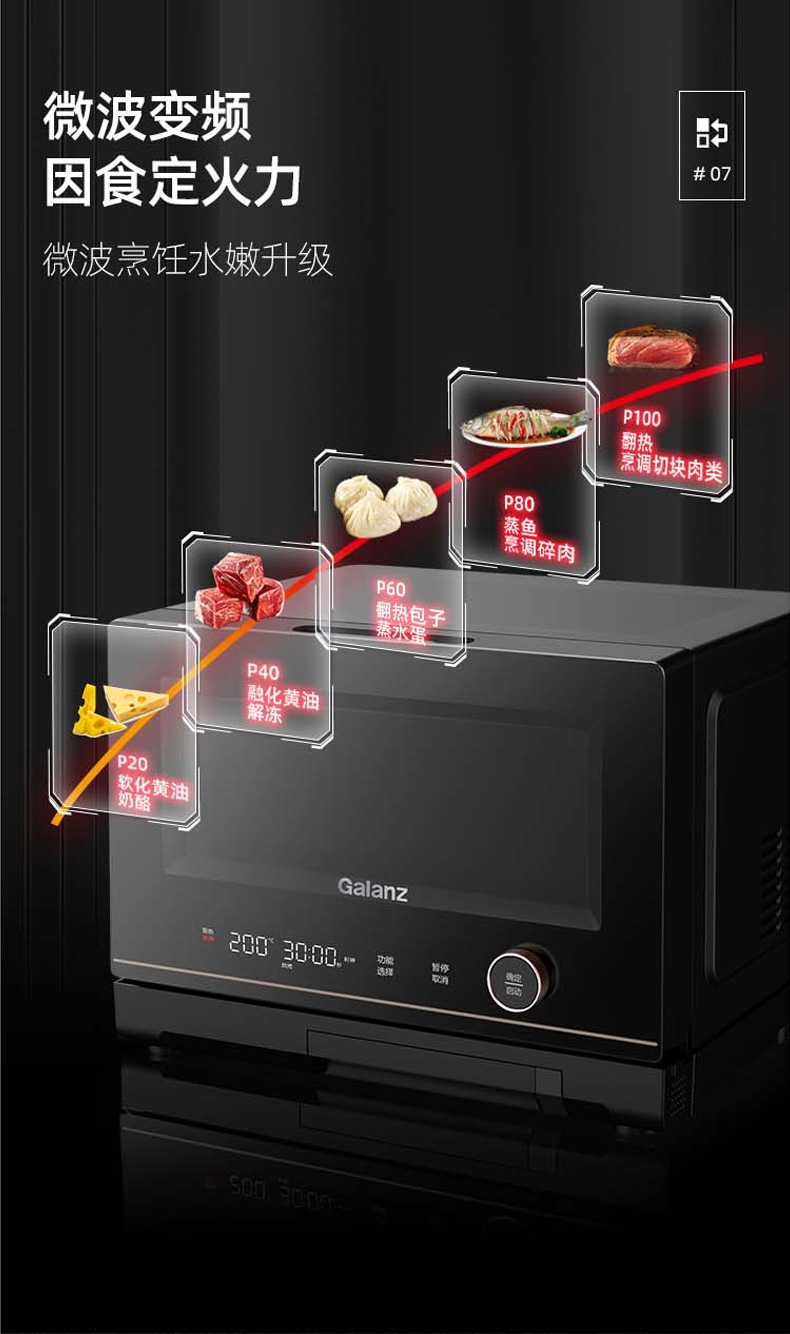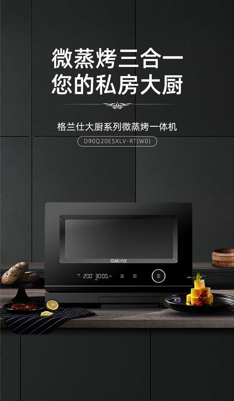 格兰仕微波炉家用专业微蒸烤一体机不锈钢内胆智能菜单多功能下开门 D90Q20ESXLV-RT(W0)