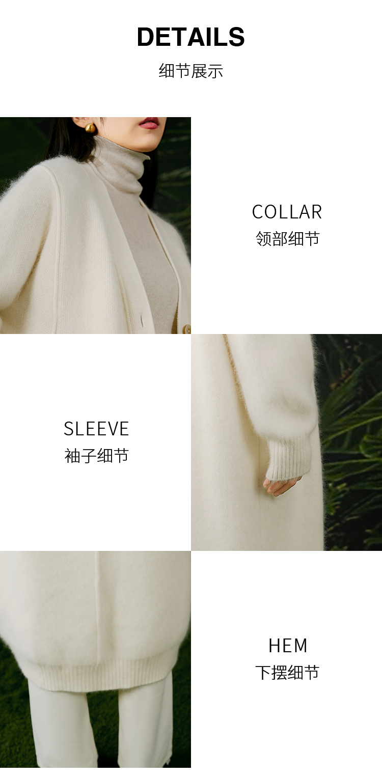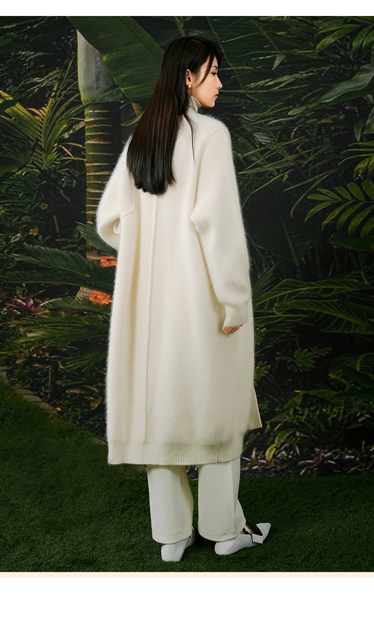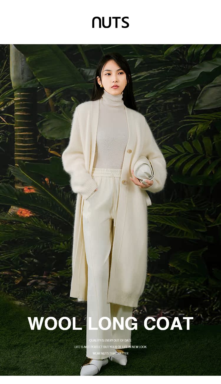NUTS春秋季新款白色气质甜美宽松显瘦长款针织外套女411052360