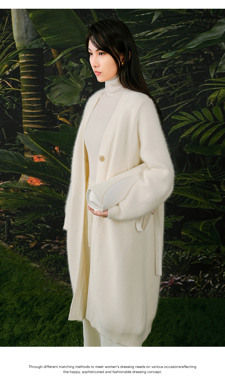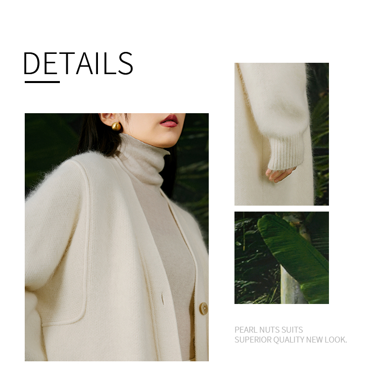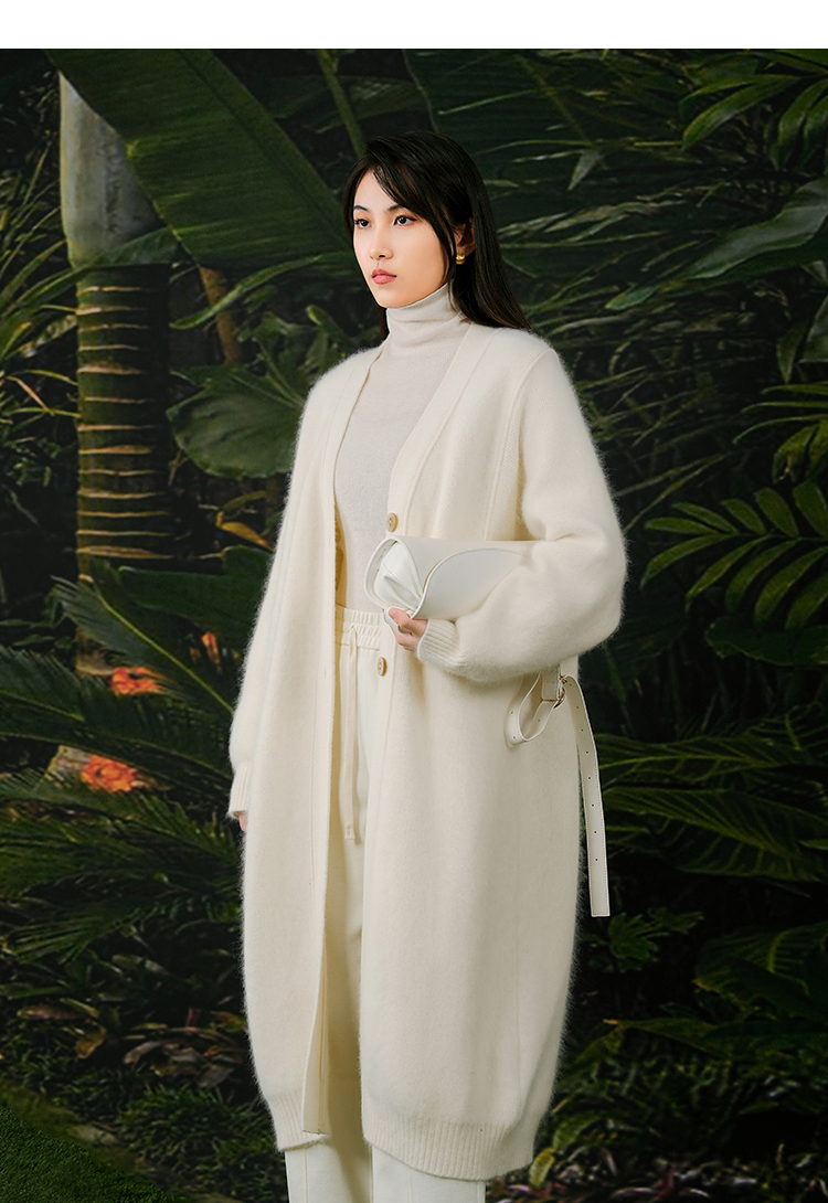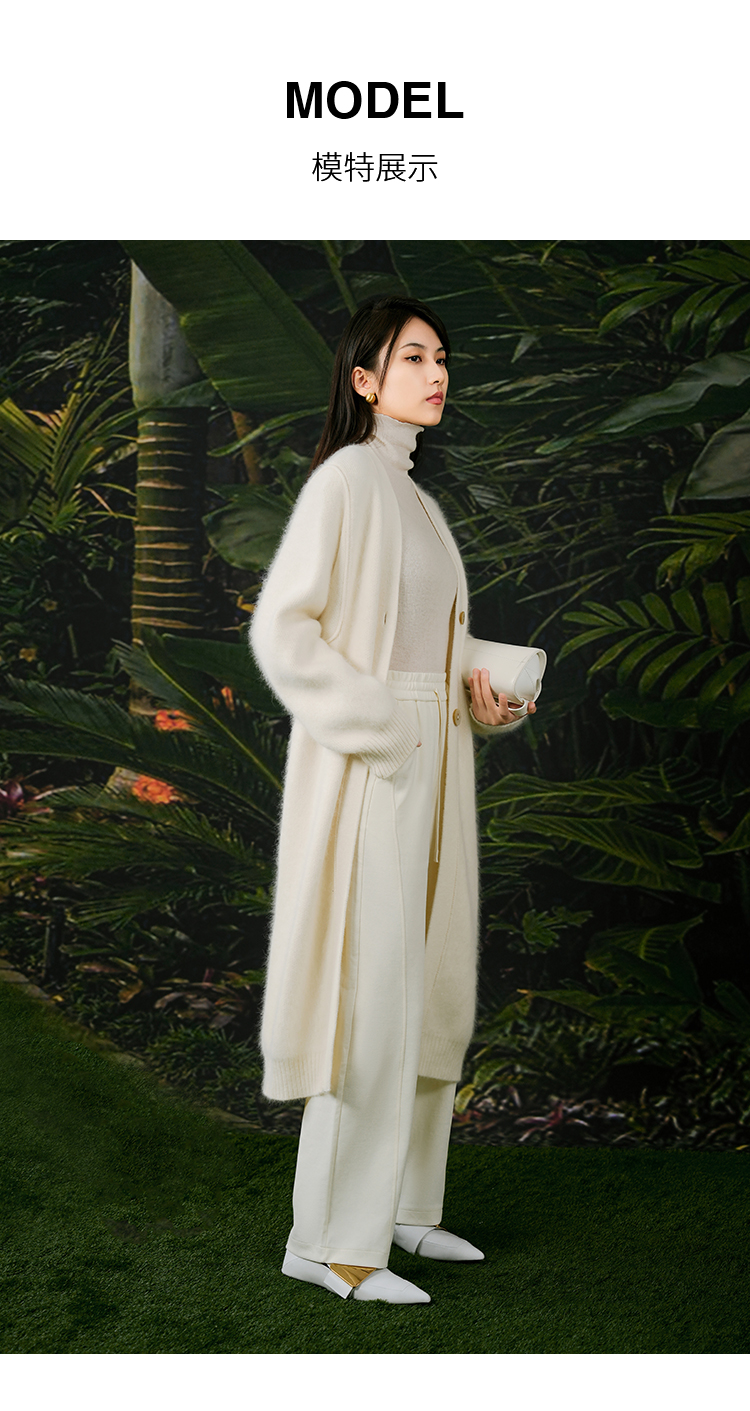 NUTS春秋季新款白色气质甜美宽松显瘦长款针织外套女411052360
