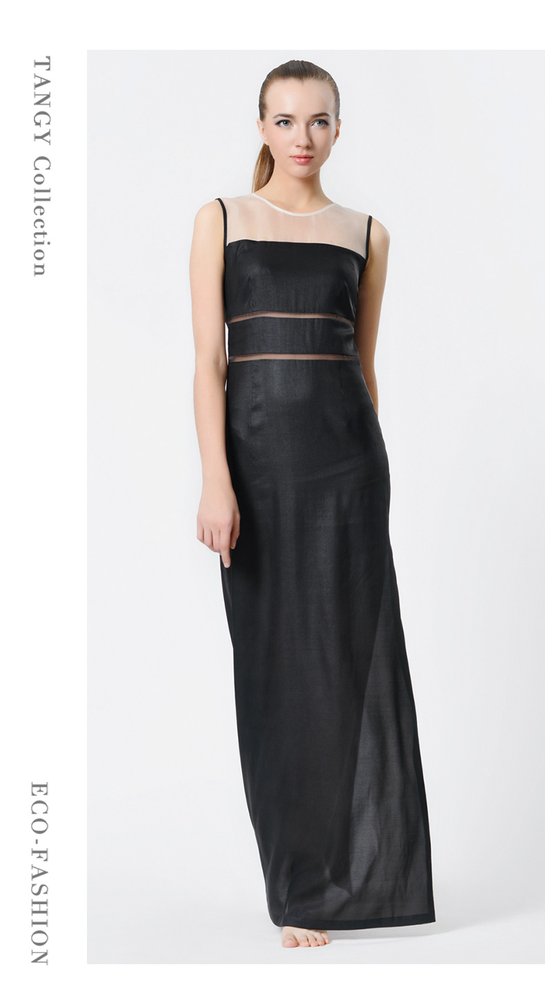 TANGY Collection/天意精品中长款香云纱连衣裙弹力莨礼服裙