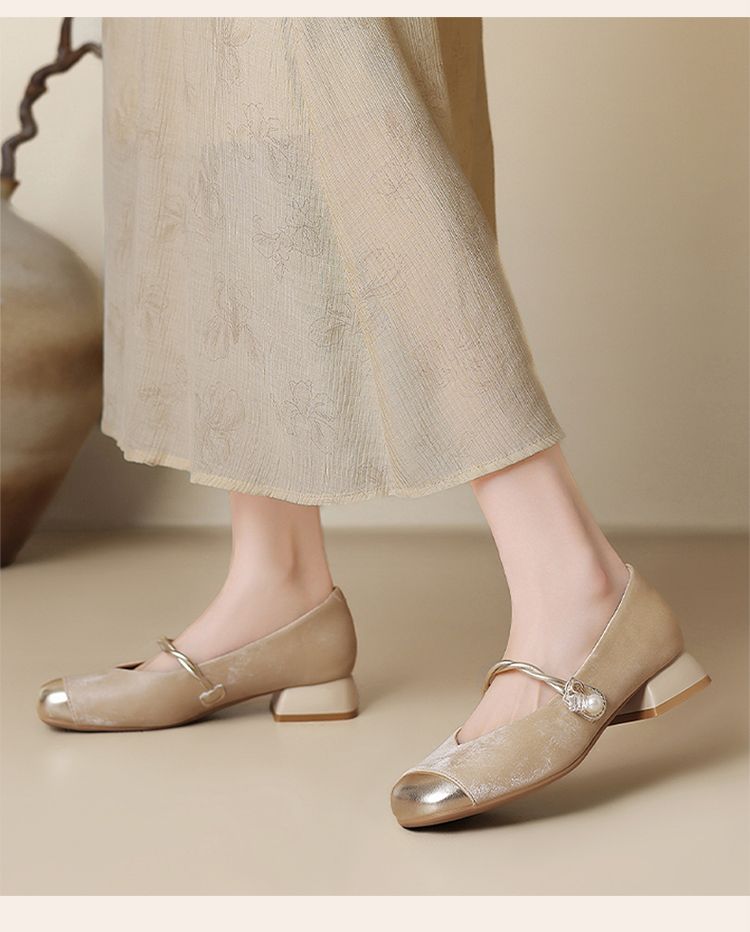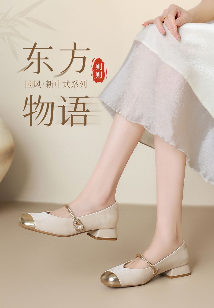 ZHR则则新中式玛丽珍鞋2025新款粗跟魔术贴气质单鞋时尚百搭女鞋