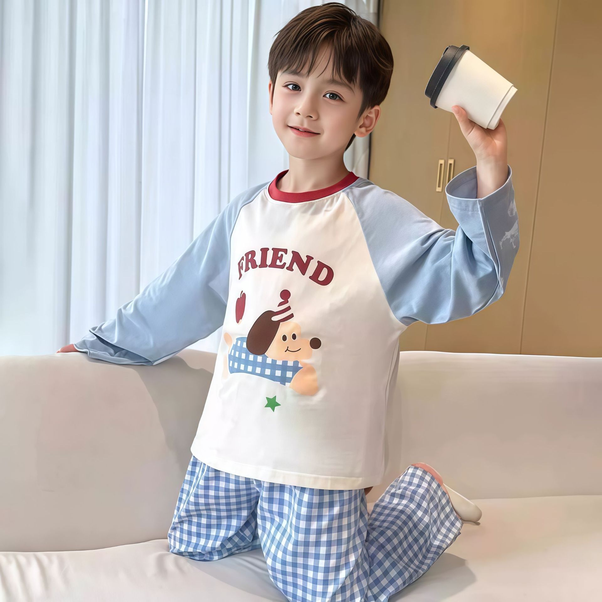 【儿童网红家居服】巴比童装儿童秋季睡衣女童卡通秋衣秋裤少女网红家居服宝宝长袖内衣套装★