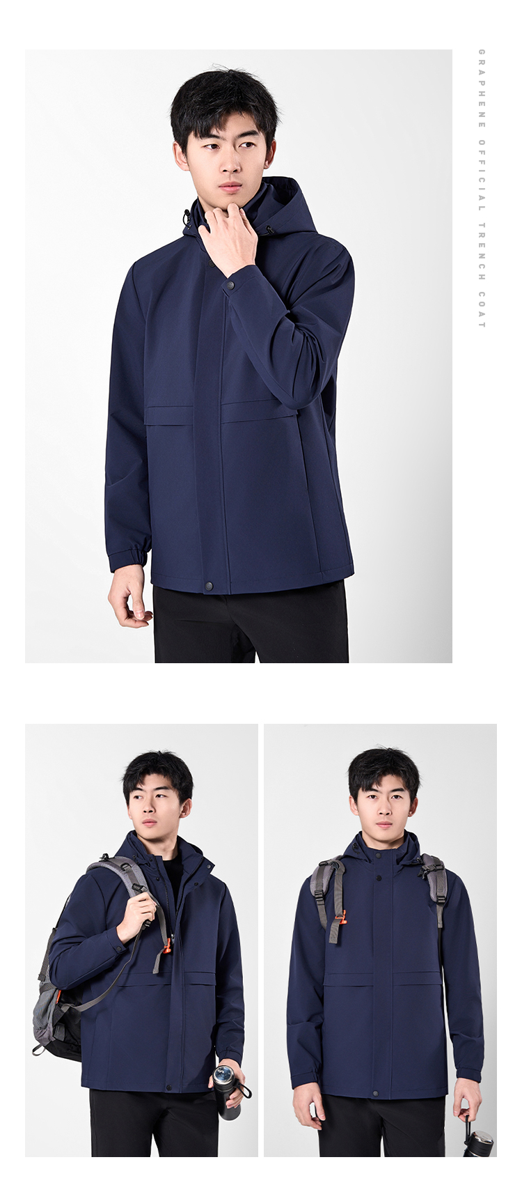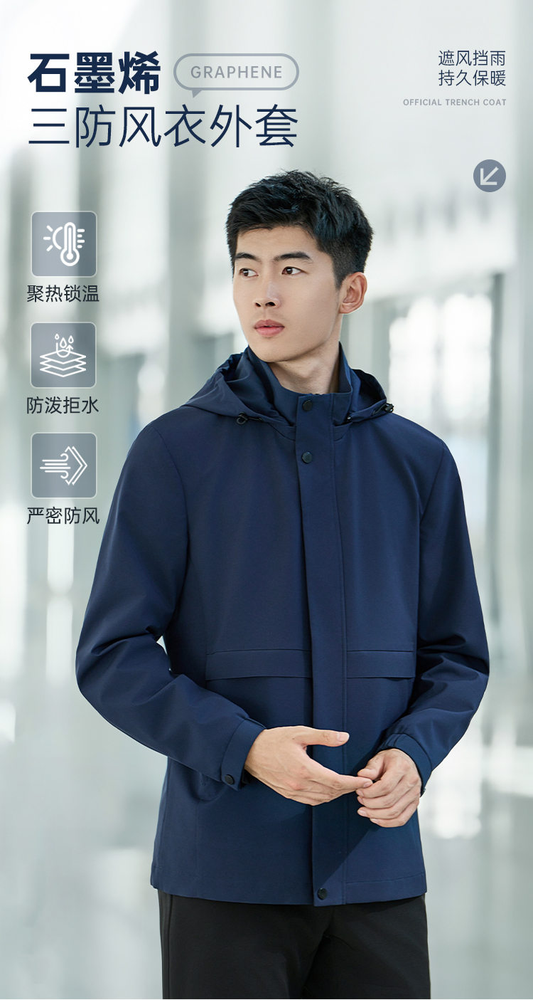 【实付满399送保温杯】【石墨烯风衣外套】可拆卸连帽风衣外套 发热保暖通勤夹克 WZ401